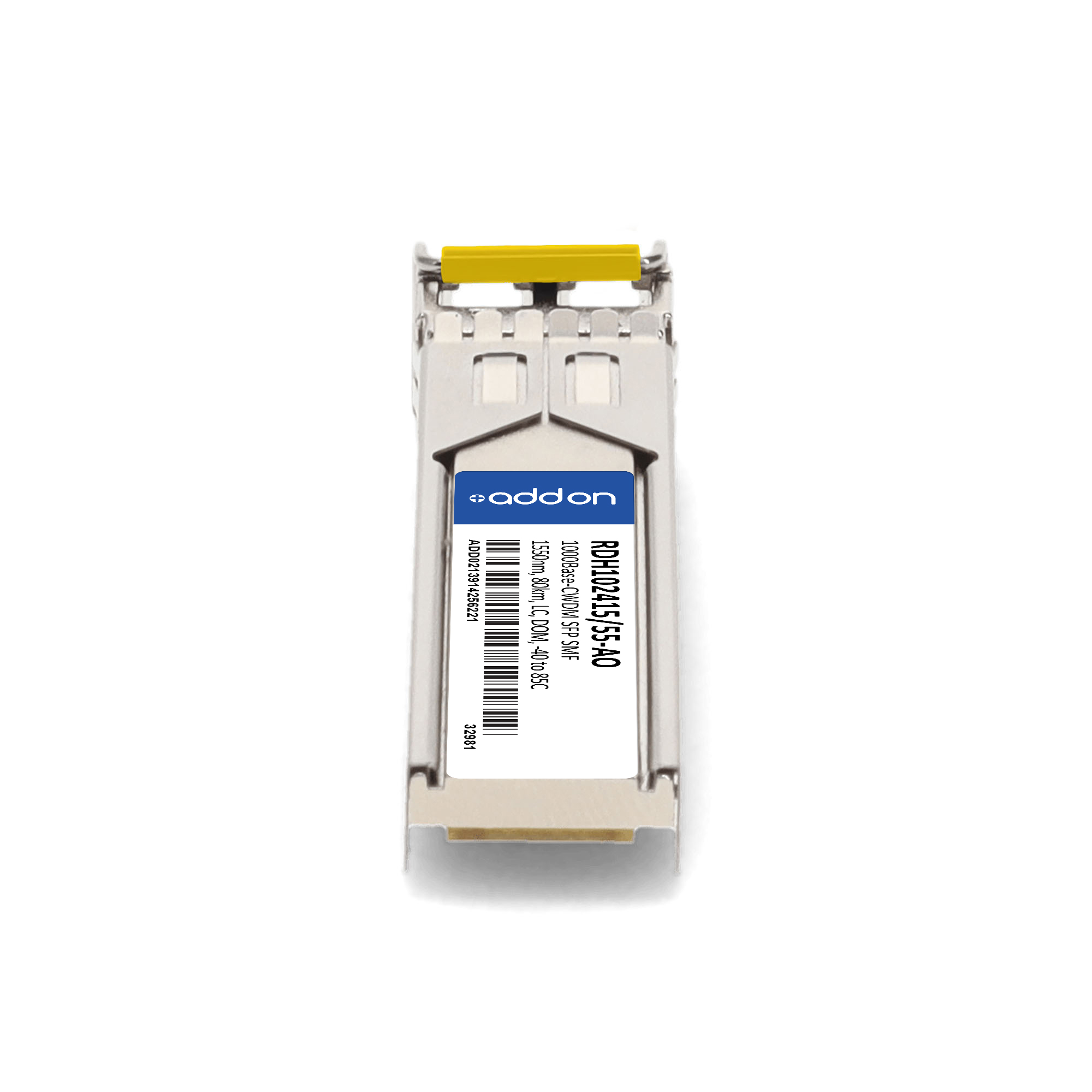 AddOn Networks LG-Ericsson RDH102415/55 Compatible TAA 1000Base-CWDM SFP Transceiver (SMF, 1550nm, 80km, LC, DOM, -40 to 85C). SFP transceiver type: Fiber optic, Maximum data transfer rate: 1000 Mbit/s, Interface type: SFP. Form factor: SFP, Brand compatibility: LG-Ericsson, Compatibility: RDH102415/55. Compliance certificates: Trade Agreements Act (TAA). Quantity per pack: 1 pc(s). Package width: 70 mm, Package depth: 121 mm, Package height: 30 mm