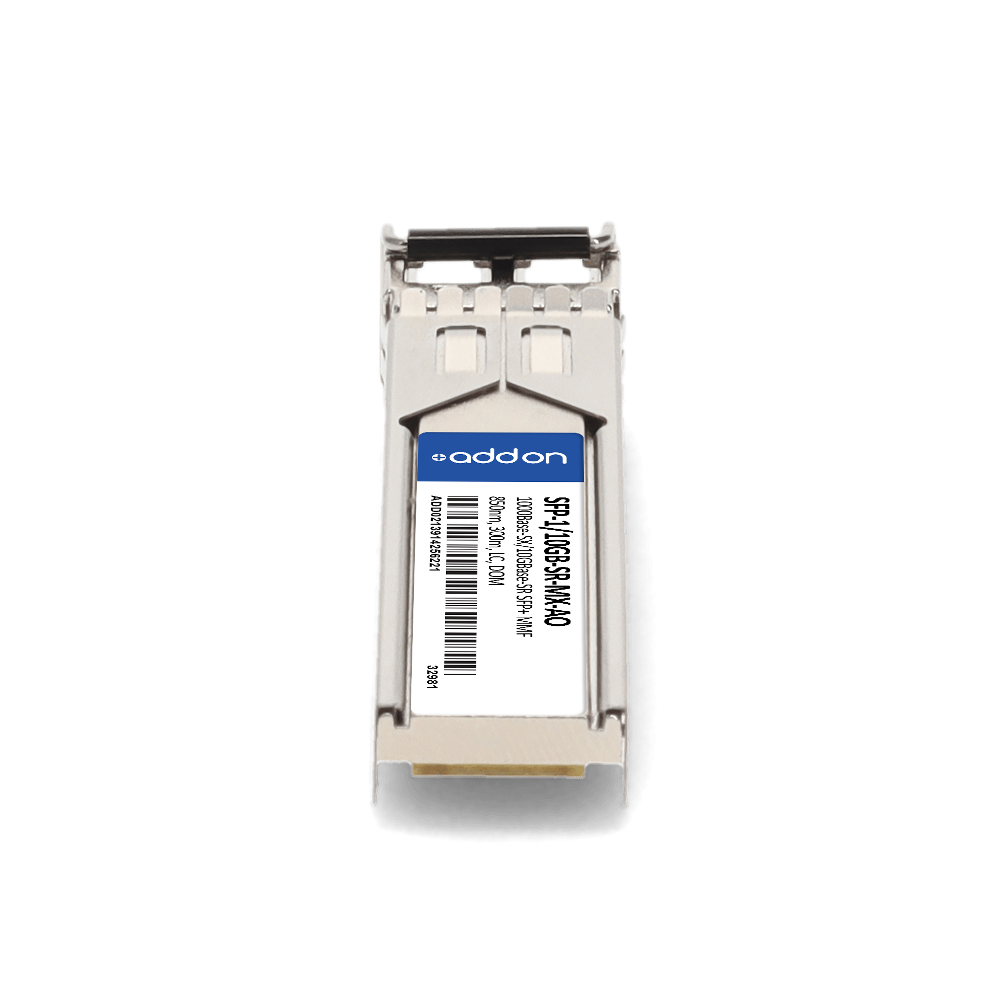 AddOn Networks Mellanox Compatible TAA 1/10GBase-SR SFP+ Dual-Rate Transceiver (MMF, 850nm, 300m, LC, DOM). SFP transceiver type: Fiber optic, Maximum data transfer rate: 10000 Mbit/s, Interface type: SFP+. Form factor: SFP+, Brand compatibility: Mellanox. Compliance certificates: Trade Agreements Act (TAA). Quantity per pack: 1 pc(s). Package width: 70 mm, Package depth: 121 mm, Package height: 30 mm