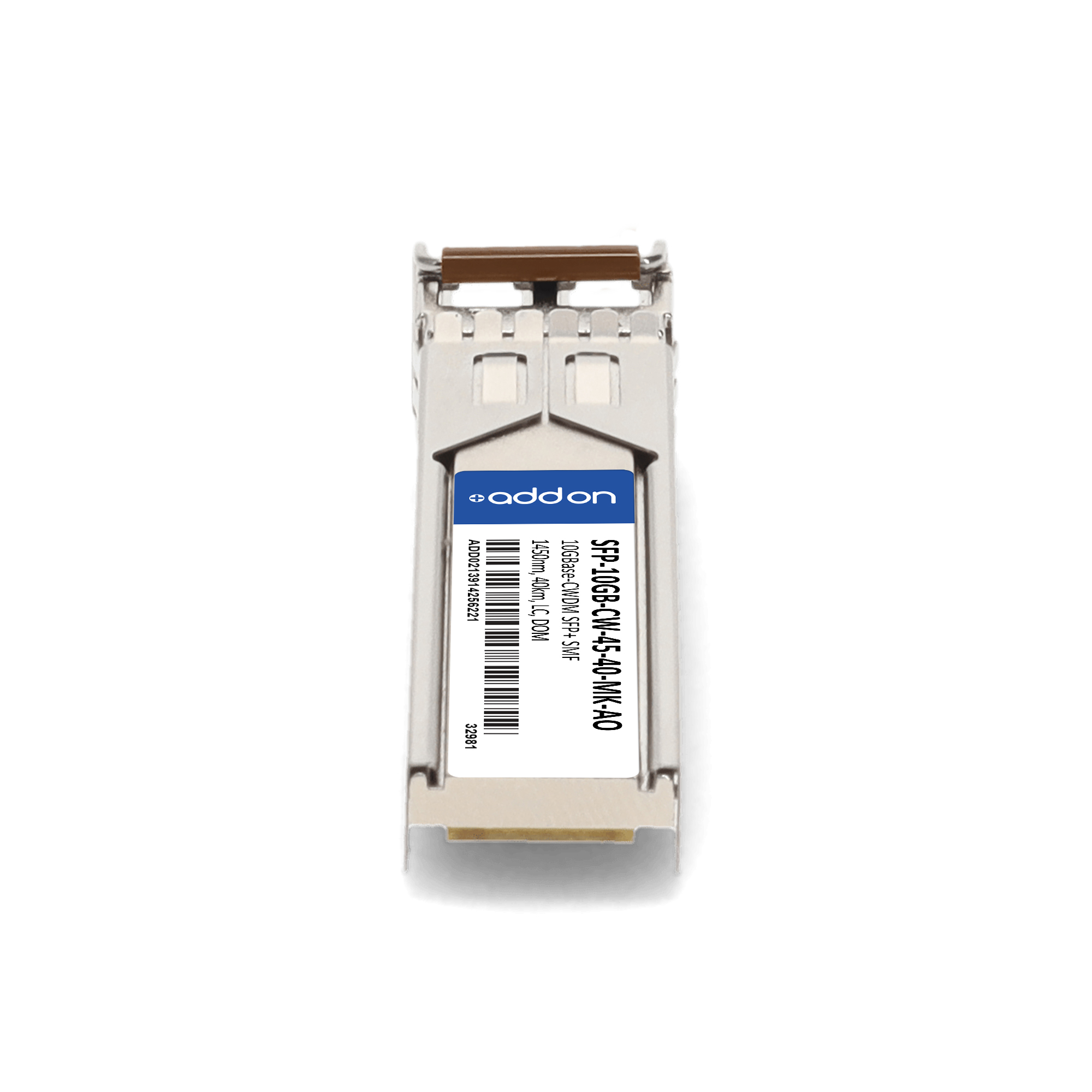 AddOn Networks Mikrotik Compatible TAA 10GBase-CWDM SFP+ Transceiver (SMF, 1450nm, 40km, LC, DOM). SFP transceiver type: Fiber optic, Maximum data transfer rate: 10000 Mbit/s, Interface type: SFP+. Form factor: SFP+, Brand compatibility: MikroTik. Compliance certificates: Trade Agreements Act (TAA). Quantity per pack: 1 pc(s). Package width: 70 mm, Package depth: 121 mm, Package height: 30 mm