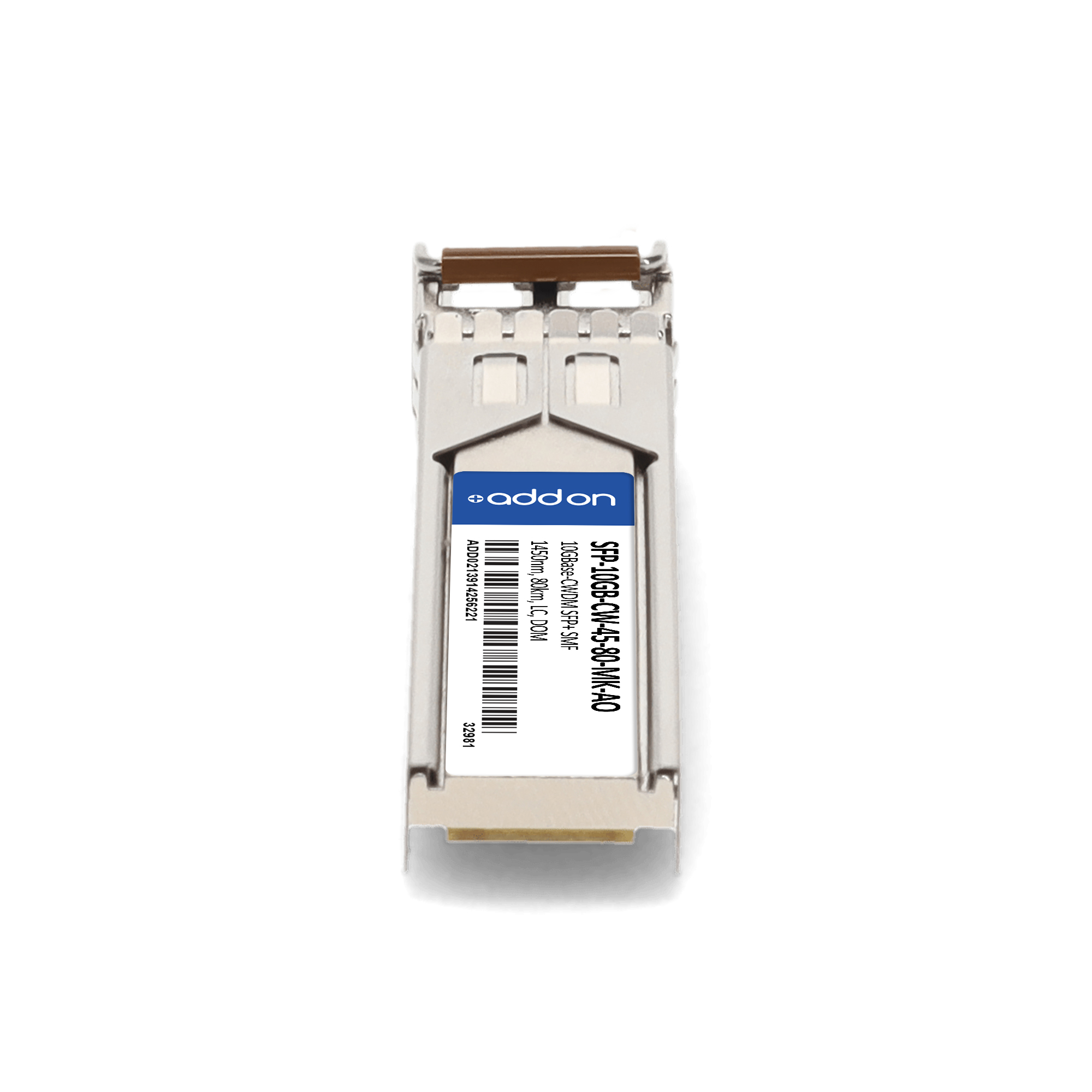 AddOn Networks MikroTik Compatible TAA 10GBase-CWDM SFP+ Transceiver (SMF, 1450nm, 80km, LC, DOM). SFP transceiver type: Fiber optic, Maximum data transfer rate: 10000 Mbit/s, Interface type: SFP+. Form factor: SFP+, Brand compatibility: MikroTik. Compliance certificates: Trade Agreements Act (TAA). Quantity per pack: 1 pc(s). Package width: 70 mm, Package depth: 121 mm, Package height: 30 mm