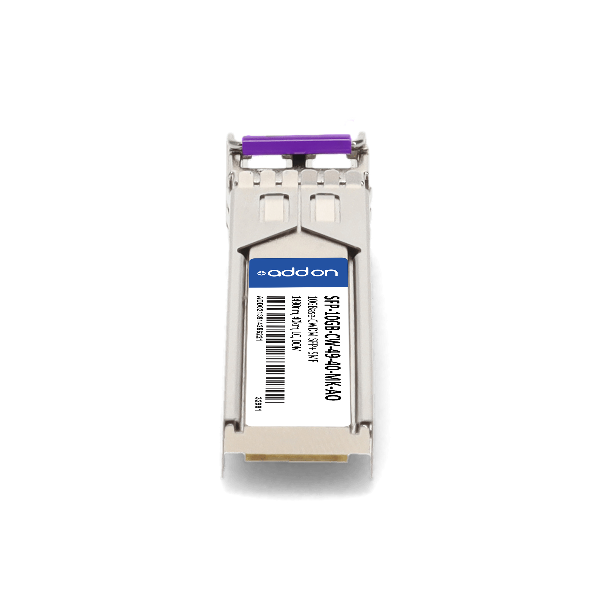 AddOn Networks Mikrotik Compatible TAA 10GBase-CWDM SFP+ Transceiver (SMF, 1490nm, 40km, LC, DOM). SFP transceiver type: Fiber optic, Maximum data transfer rate: 10000 Mbit/s, Interface type: SFP+. Form factor: SFP+, Brand compatibility: MikroTik. Compliance certificates: Trade Agreements Act (TAA). Quantity per pack: 1 pc(s). Package width: 70 mm, Package depth: 121 mm, Package height: 30 mm