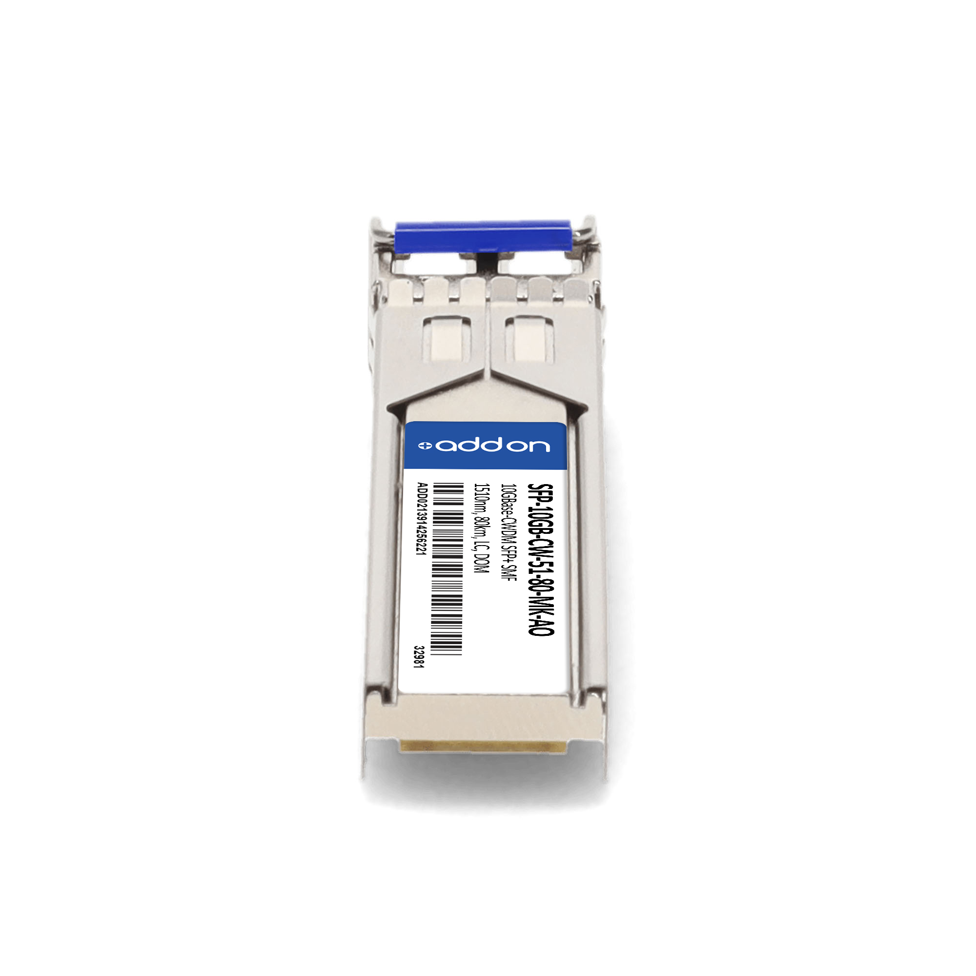 AddOn Networks MikroTik Compatible TAA 10GBase-CWDM SFP+ Transceiver (SMF, 1510nm, 80km, LC, DOM). SFP transceiver type: Fiber optic, Maximum data transfer rate: 10000 Mbit/s, Interface type: SFP+. Form factor: SFP+, Brand compatibility: MikroTik. Compliance certificates: Trade Agreements Act (TAA). Quantity per pack: 1 pc(s). Package width: 70 mm, Package depth: 121 mm, Package height: 30 mm