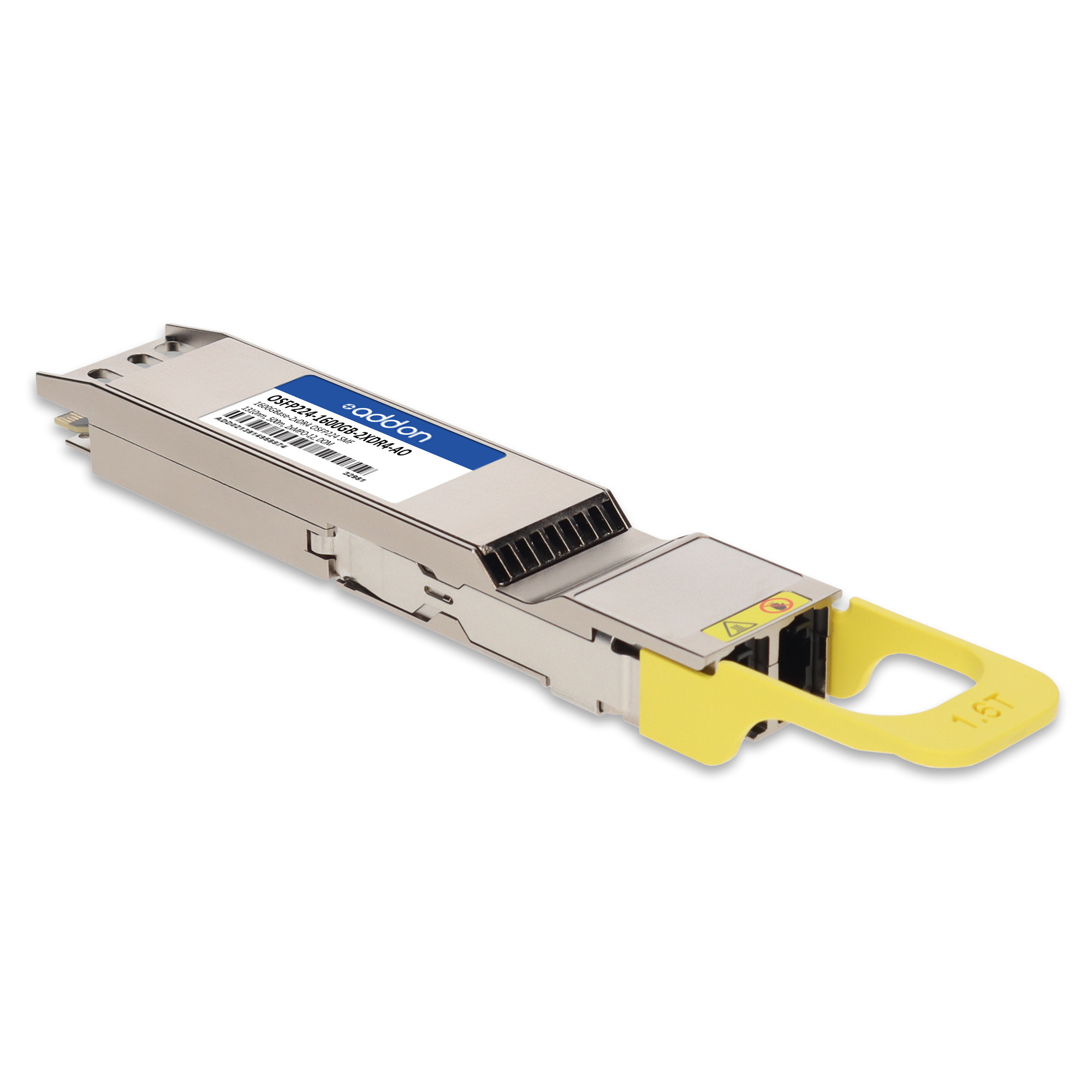 AddOn Networks MSA and TAA 1.6T 2xDR4 PAM4 OSFP224 Transceiver (SMF, 1310nm, 500m, 2xMPO, DOM, CMIS 5.0). SFP transceiver type: Fiber optic, Maximum data transfer rate: 1600000 Mbit/s, Interface type: OSFP224. Product colour: Stainless steel, Yellow. Input voltage: 3.3 V, Maximum voltage: 3.6 V. Compliance certificates: CE, Network Equipment Building Standards (NEBS), REACH, RoHS, Trade Agreements Act (TAA), WEEE. Doesn't contain: Lead