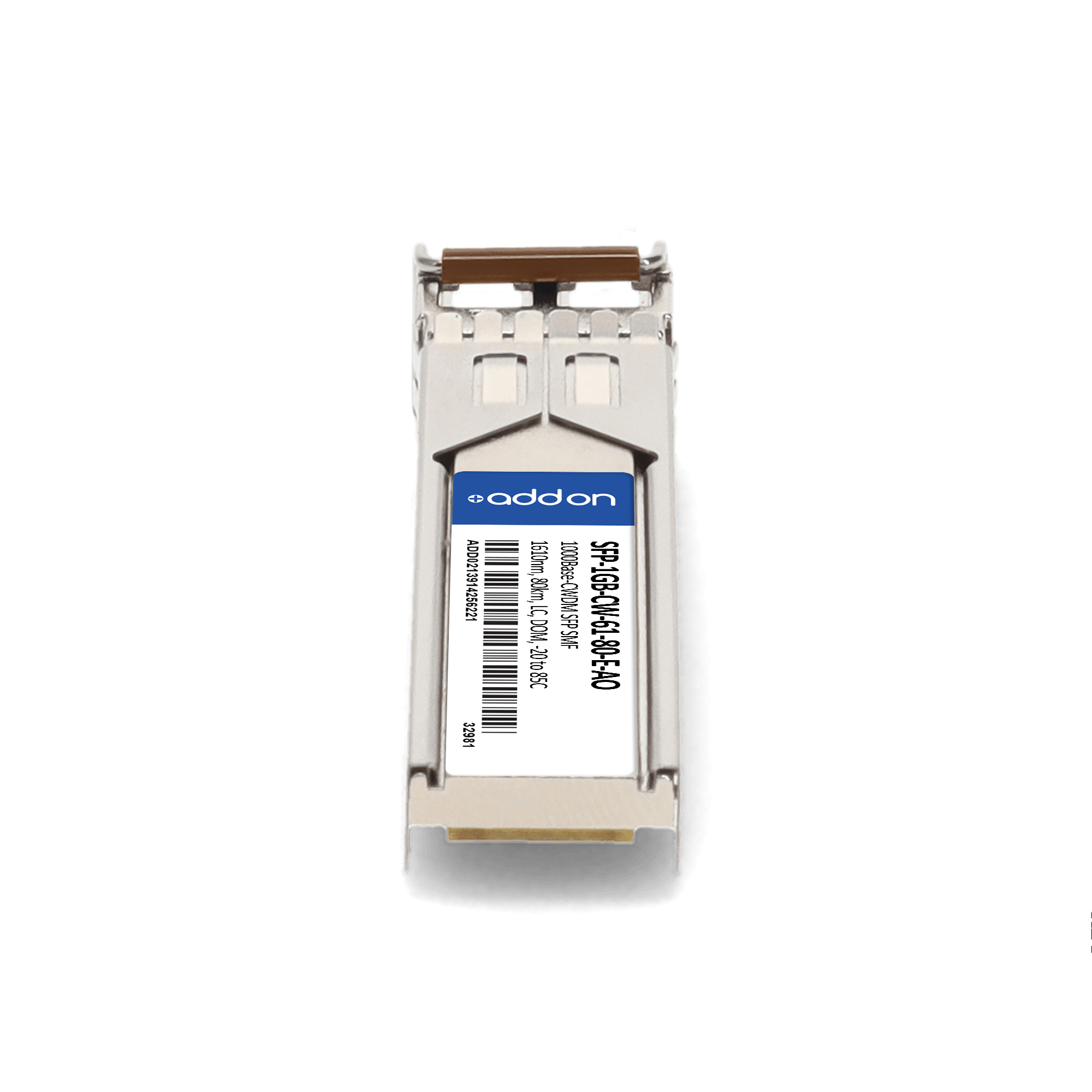 AddOn Networks MSA and TAA 1000Base-CWDM SFP Transceiver (SMF, 1610nm, 80km, LC, DOM, -20 to 85C). SFP transceiver type: Fiber optic, Maximum data transfer rate: 1000 Mbit/s, Interface type: SFP. Product colour: Silver, Form factor: SFP, Brand compatibility: MSA Compliant. Compliance certificates: Trade Agreements Act (TAA). Quantity per pack: 1 pc(s). Package width: 70 mm, Package depth: 121 mm, Package height: 30 mm