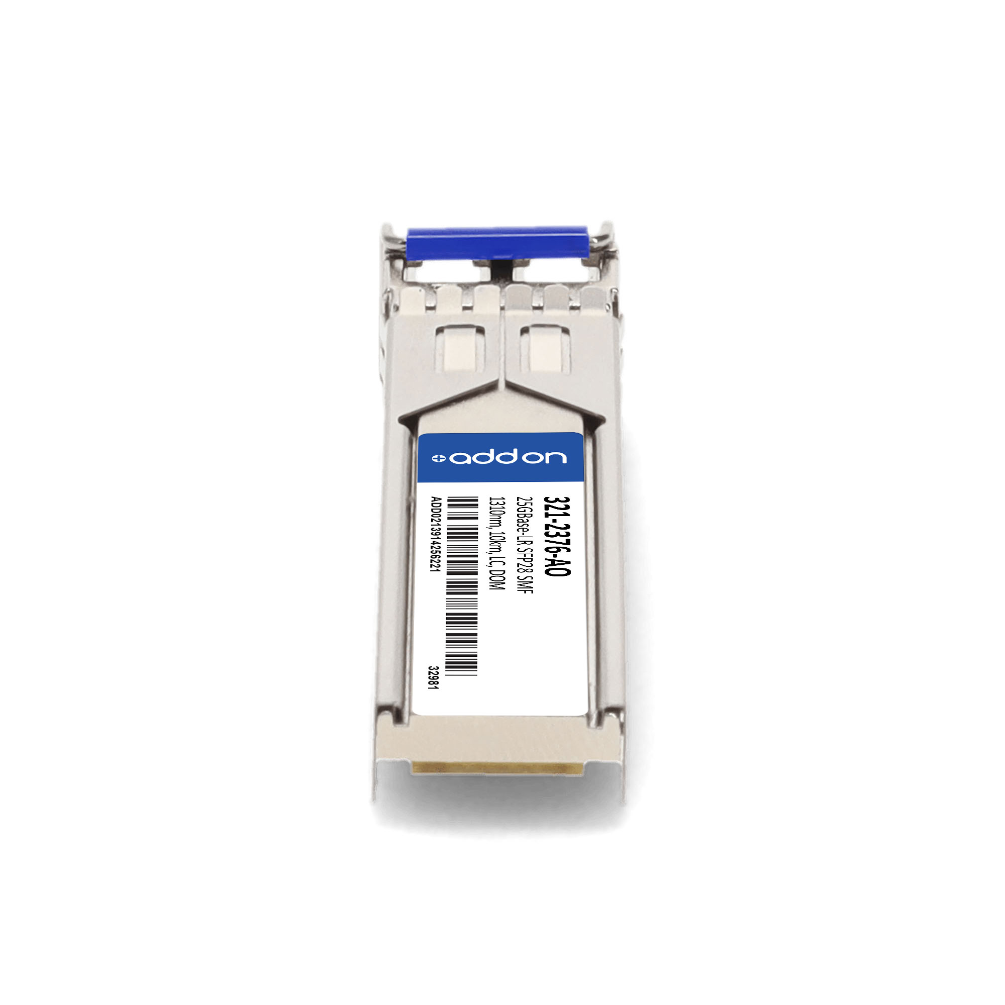 AddOn Networks Netscout 321-2376 Compatible TAA 25GBase-LR SFP28 Transceiver (SMF, 1310nm, 10km, LC, DOM). SFP transceiver type: Fiber optic, Maximum data transfer rate: 25000 Mbit/s, Interface type: SFP28. Form factor: SFP28, Brand compatibility: NetScout, Compatibility: 321-2376. Compliance certificates: Trade Agreements Act (TAA). Quantity per pack: 1 pc(s). Package width: 70 mm, Package depth: 121 mm, Package height: 30 mm