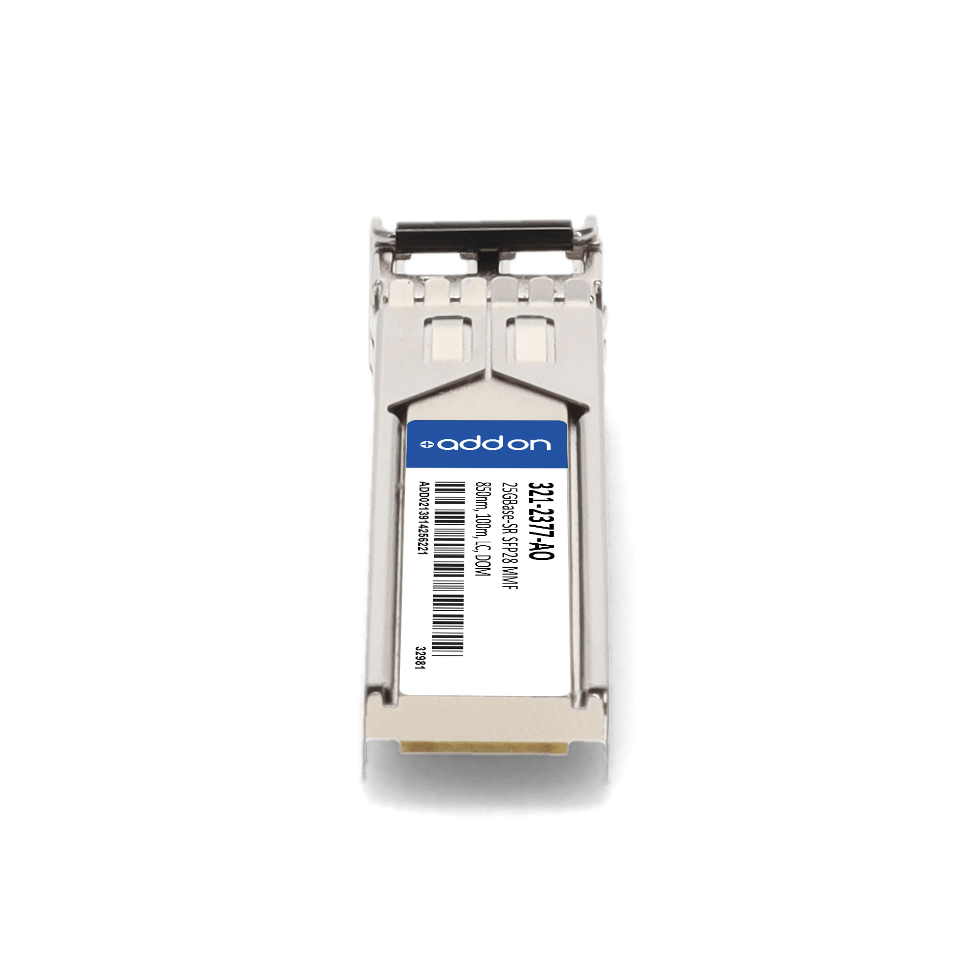 AddOn Networks Netscout 321-2377 Compatible TAA 25GBase-SR SFP28 Transceiver (MMF, 850nm, 100m, LC, DOM). SFP transceiver type: Fiber optic, Maximum data transfer rate: 25000 Mbit/s, Interface type: SFP28. Form factor: SFP28, Brand compatibility: NetScout, Compatibility: 321-2377. Compliance certificates: Trade Agreements Act (TAA). Quantity per pack: 1 pc(s). Package width: 70 mm, Package depth: 121 mm, Package height: 30 mm