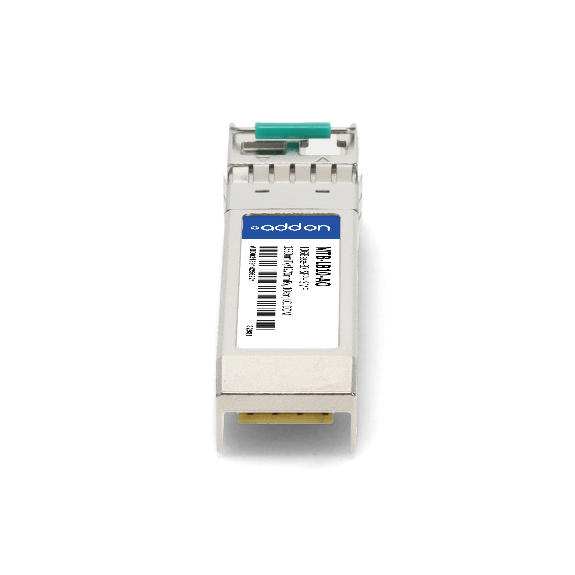 AddOn Networks Planet MTB-LB10 Compatible TAA 10GBase-BX SFP+ Transceiver (SMF, 1330nmTx/1270nmRx, 10km, LC). SFP transceiver type: Fiber optic, Maximum data transfer rate: 10000 Mbit/s, Interface type: SFP+. Form factor: SFP+, Brand compatibility: Planet. Compliance certificates: Trade Agreements Act (TAA). Quantity per pack: 1 pc(s). Package width: 70 mm, Package depth: 121 mm, Package height: 30 mm