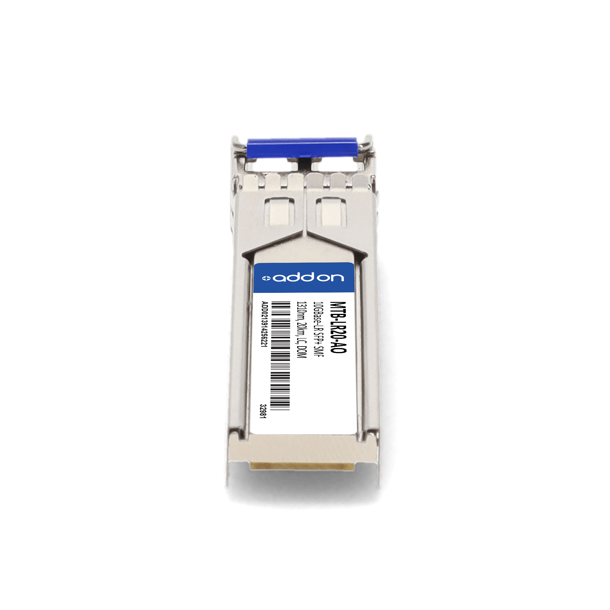 AddOn Networks Planet MTB-LR20 Compatible TAA 10GBase-LR SFP+ Transceiver (SMF, 1310nm, 20km, LC, DOM). SFP transceiver type: Fiber optic, Maximum data transfer rate: 10000 Mbit/s, Interface type: SFP+. Form factor: SFP+, Brand compatibility: Planet. Compliance certificates: Trade Agreements Act (TAA). Quantity per pack: 1 pc(s). Package width: 70 mm, Package depth: 121 mm, Package height: 30 mm
