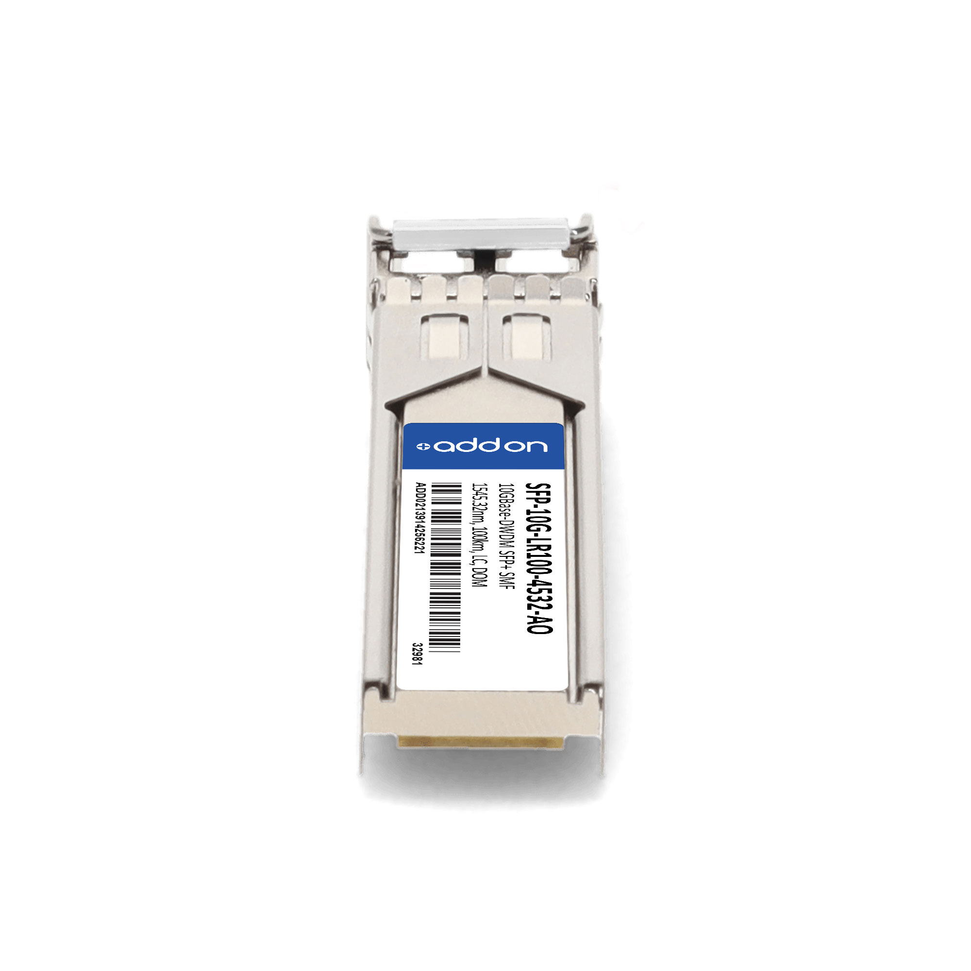 AddOn Networks SFP-10G-LR100-4532-AO. SFP transceiver type: Fiber optic, Maximum data transfer rate: 10000 Mbit/s, Interface type: SFP+. Product colour: Silver, Housing material: Metal, Brand compatibility: Cisco. Maximum voltage: 4 V. Compliance certificates: RoHS, Trade Agreements Act (TAA). Doesn't contain: Lead