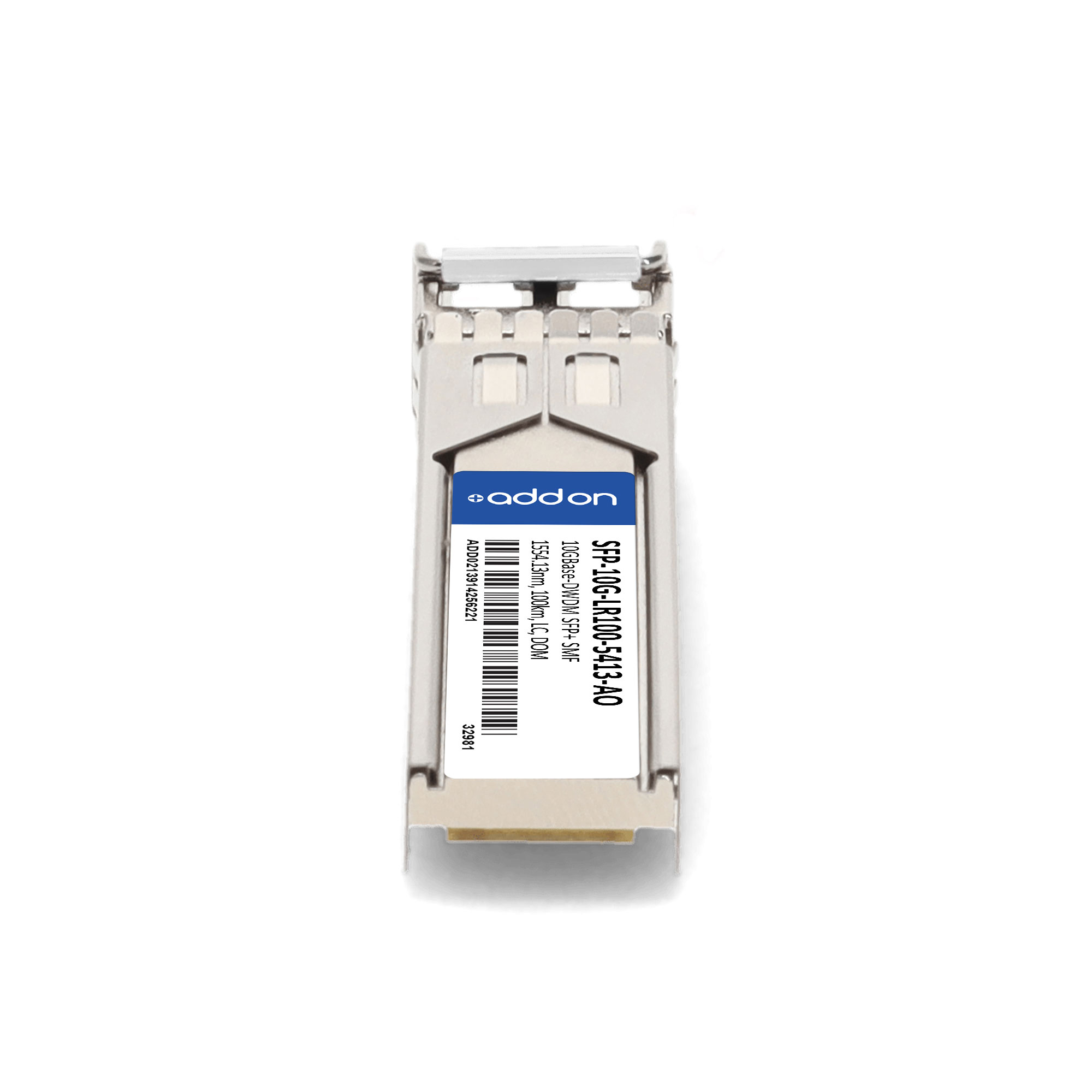 AddOn Networks SFP-10G-LR100-5413-AO. SFP transceiver type: Fiber optic, Maximum data transfer rate: 10000 Mbit/s, Interface type: SFP+. Product colour: Silver, Housing material: Metal, Brand compatibility: Cisco. Maximum voltage: 4 V. Compliance certificates: RoHS, Trade Agreements Act (TAA). Doesn't contain: Lead