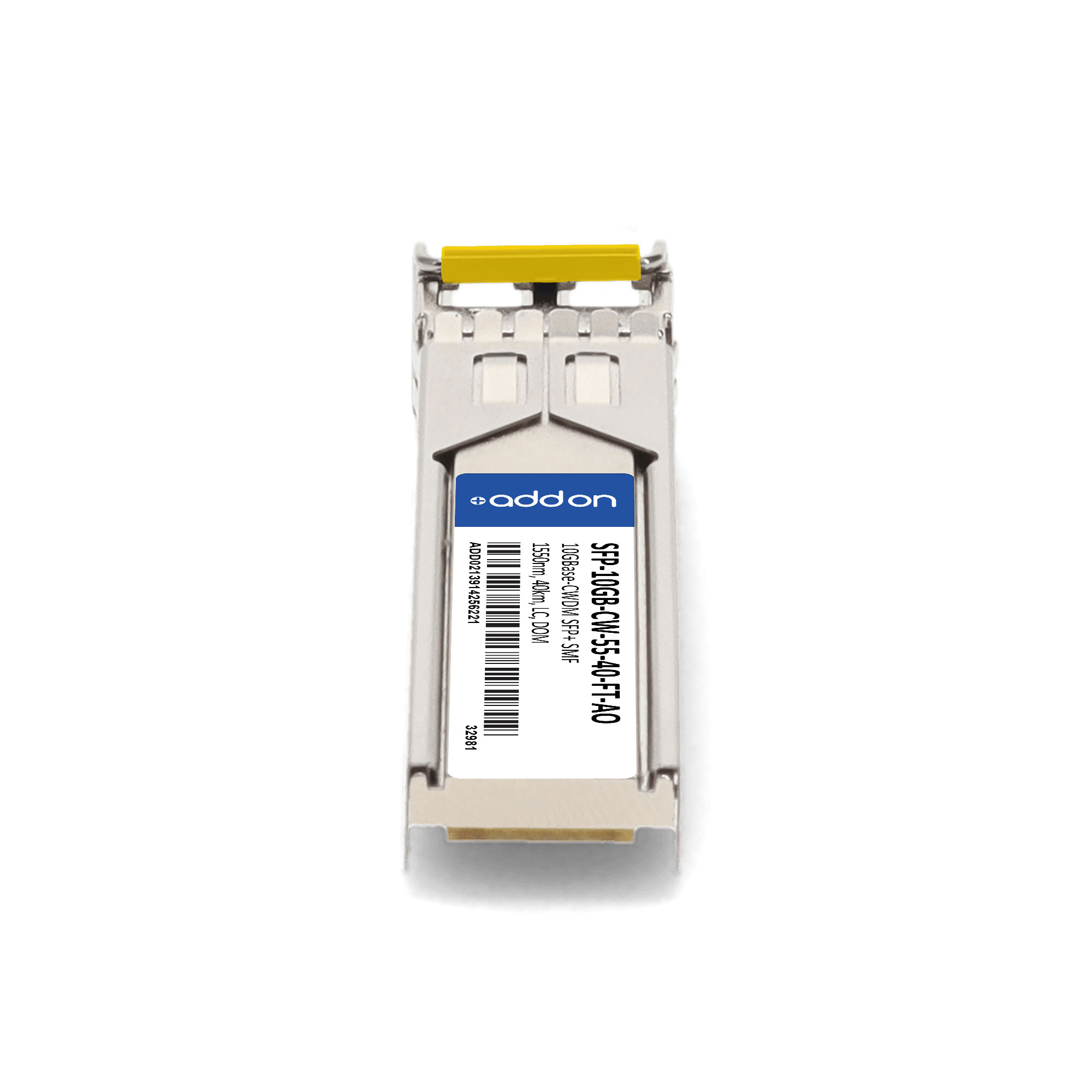 AddOn Networks SFP-10GB-CW-55-40-FT-AO. SFP transceiver type: Fiber optic, Maximum data transfer rate: 10000 Mbit/s, Interface type: SFP+. Product colour: Silver, Brand compatibility: Fortinet. Compliance certificates: Trade Agreements Act (TAA). Quantity per pack: 1 pc(s). Package width: 69.8 mm, Package depth: 120.6 mm, Package height: 30.5 mm |