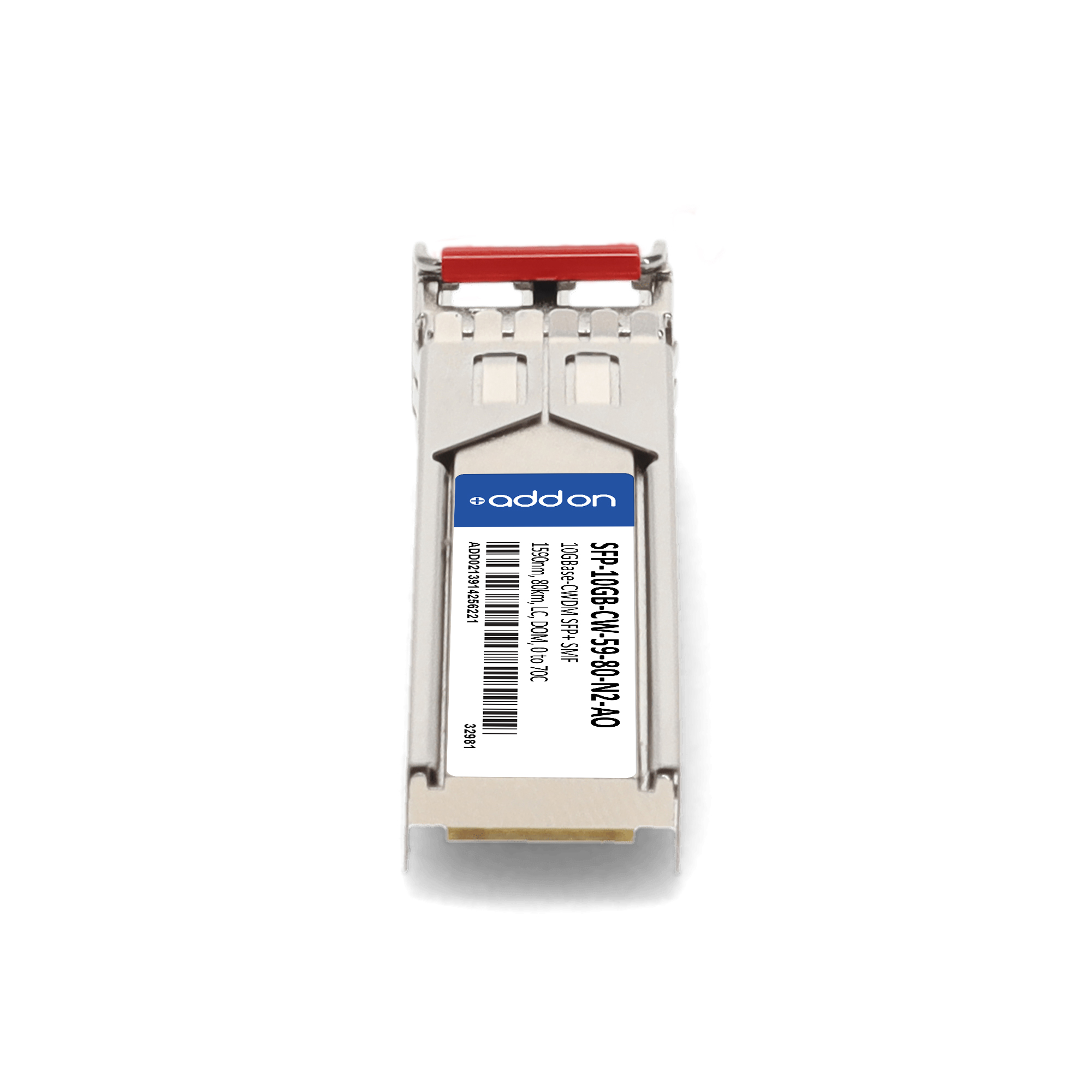 AddOn Networks SFP-10GB-CW-59-80-N2-AO. SFP transceiver type: Fiber optic, Maximum data transfer rate: 10000 Mbit/s, Interface type: SFP+. Product colour: Silver, Brand compatibility: Alcatel-Lucent / Nokia. Compliance certificates: Trade Agreements Act (TAA). Quantity per pack: 1 pc(s). Package width: 69.8 mm, Package depth: 120.6 mm, Package height: 30.5 mm |