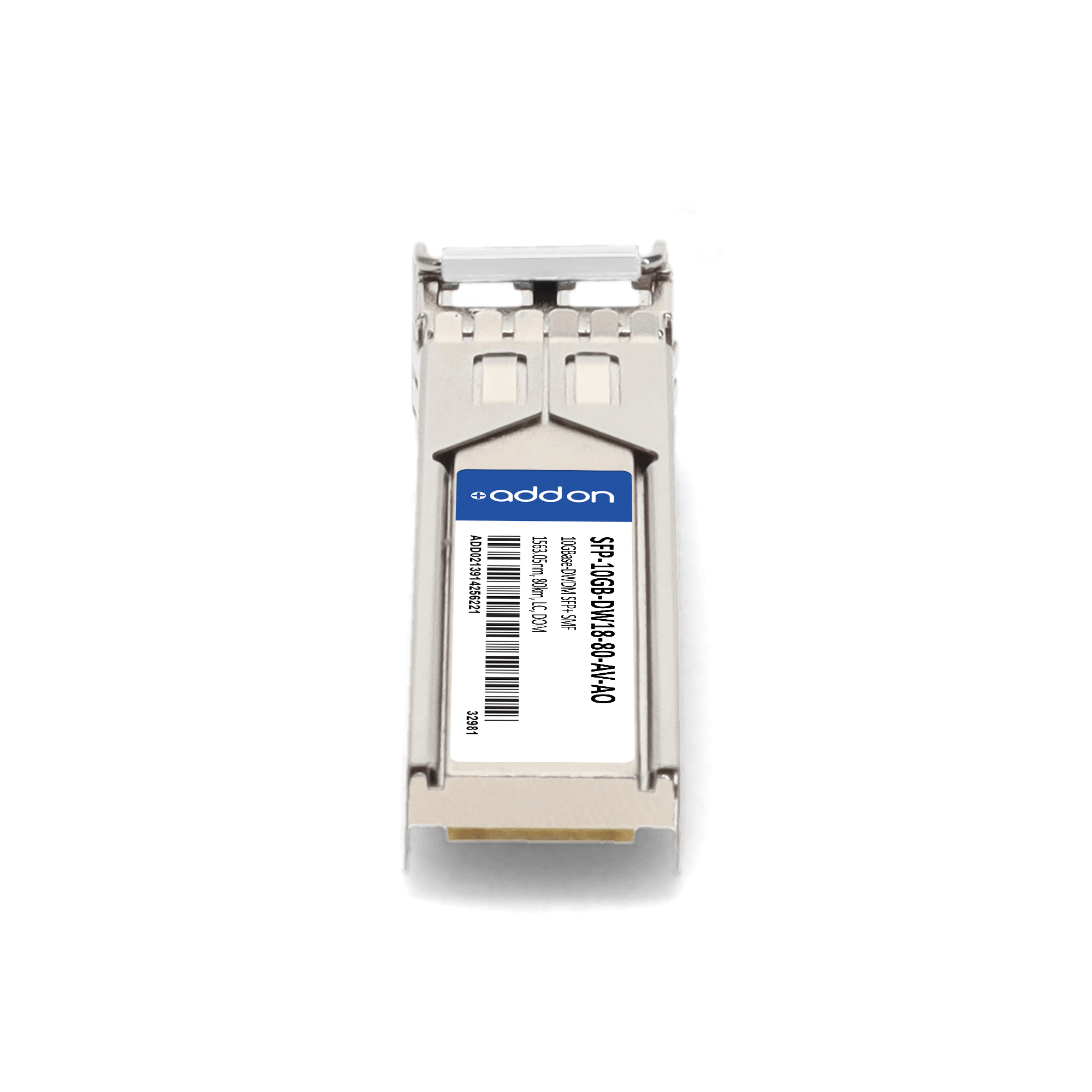 AddOn Networks SFP-10GB-DW18-80-AV-AO. SFP transceiver type: Fiber optic, Maximum data transfer rate: 10000 Mbit/s, Interface type: SFP+. Product colour: Silver, Brand compatibility: ADVA. Compliance certificates: Trade Agreements Act (TAA). Quantity per pack: 1 pc(s). Package width: 69.8 mm, Package depth: 120.6 mm, Package height: 30.5 mm |