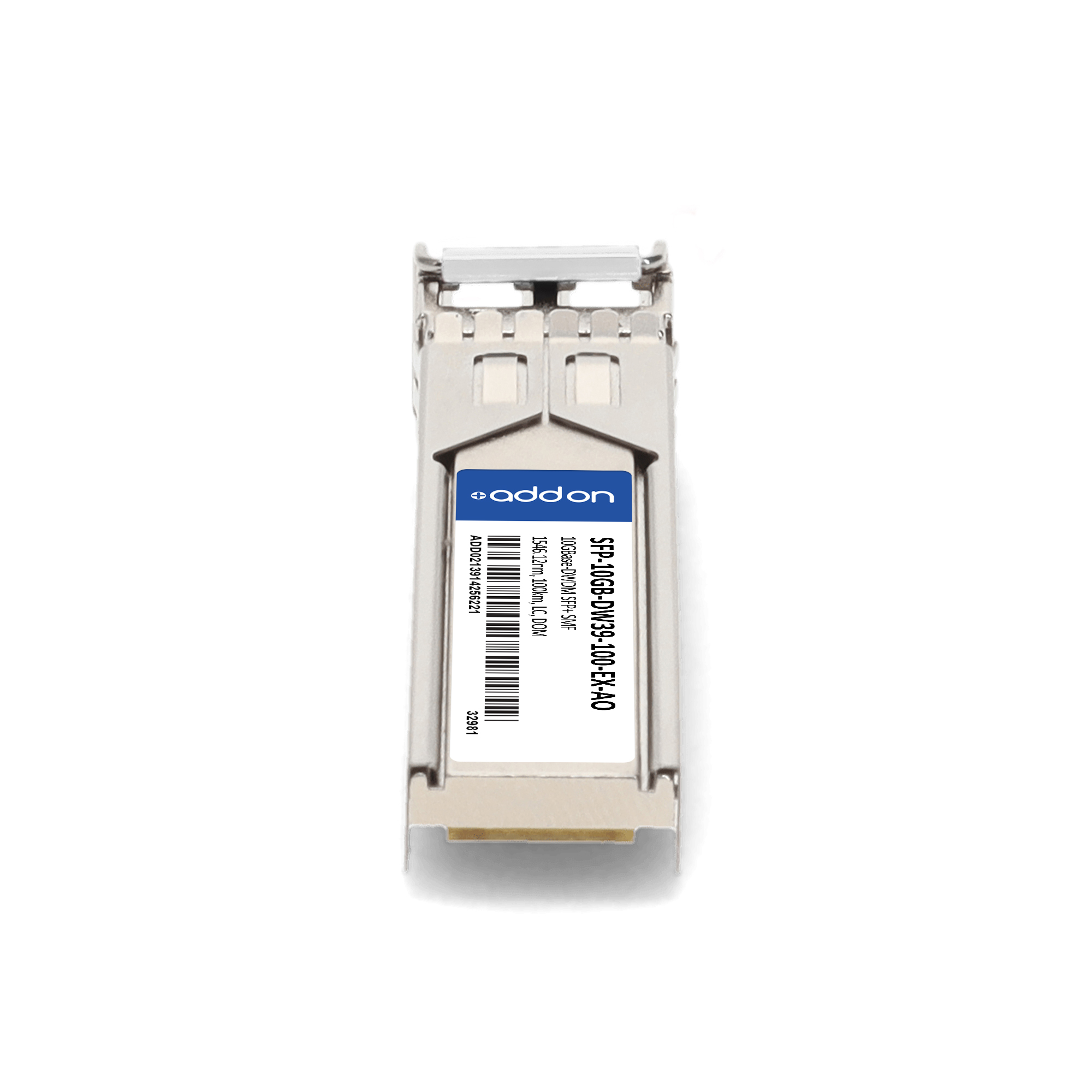 AddOn Networks SFP-10GB-DW39-100-EX-AO. SFP transceiver type: Fiber optic, Maximum data transfer rate: 10000 Mbit/s, Interface type: SFP+. Product colour: Silver, Brand compatibility: Extreme Networks. Compliance certificates: Trade Agreements Act (TAA). Quantity per pack: 1 pc(s). Package width: 69.8 mm, Package depth: 120.6 mm, Package height: 30.5 mm |
