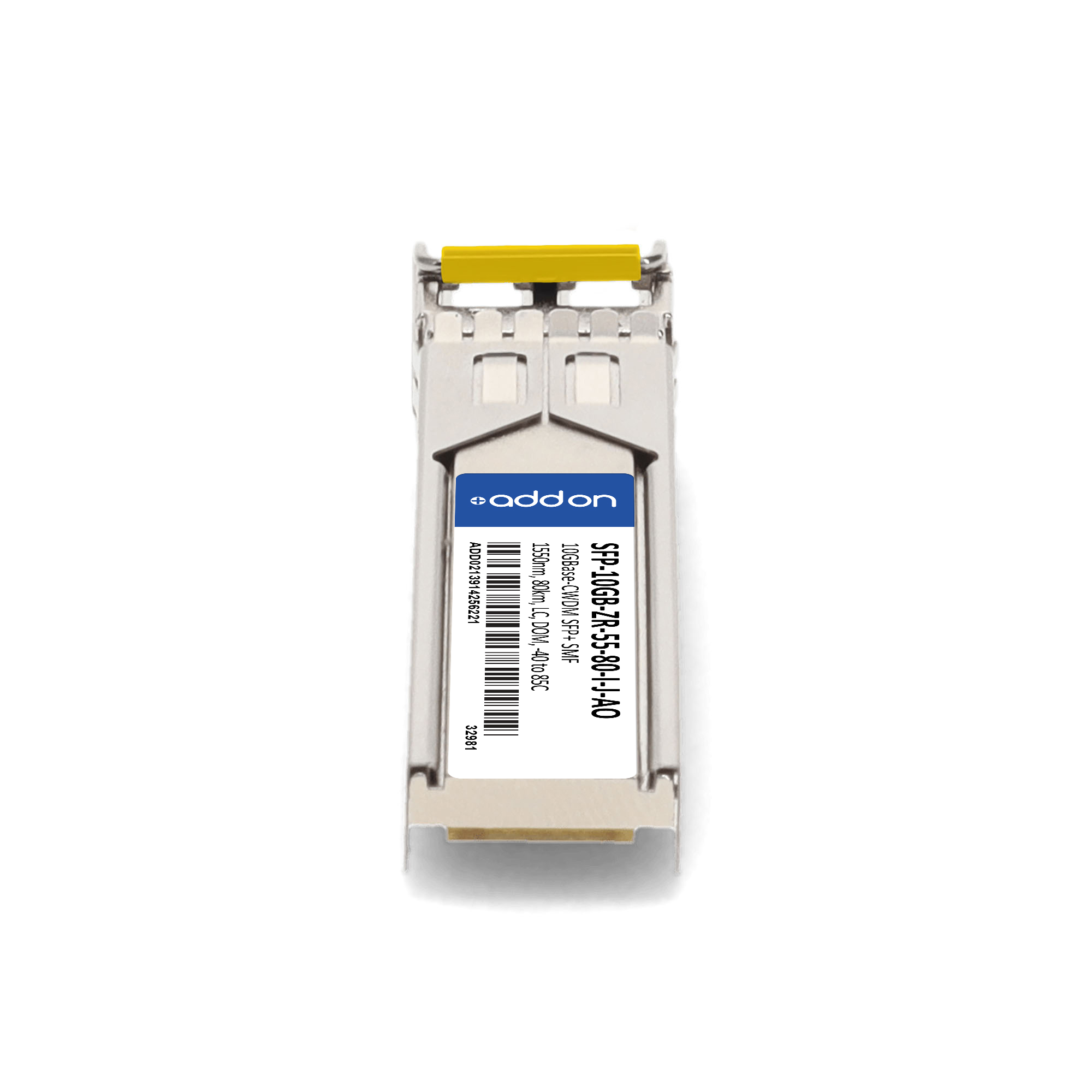 AddOn Networks SFP-10GB-ZR-55-80-I-J-AO. SFP transceiver type: Fiber optic, Maximum data transfer rate: 10000 Mbit/s, Interface type: SFP+. Product colour: Silver, Brand compatibility: Juniper. Compliance certificates: Trade Agreements Act (TAA). Quantity per pack: 1 pc(s). Package width: 69.8 mm, Package depth: 120.6 mm, Package height: 30.5 mm |