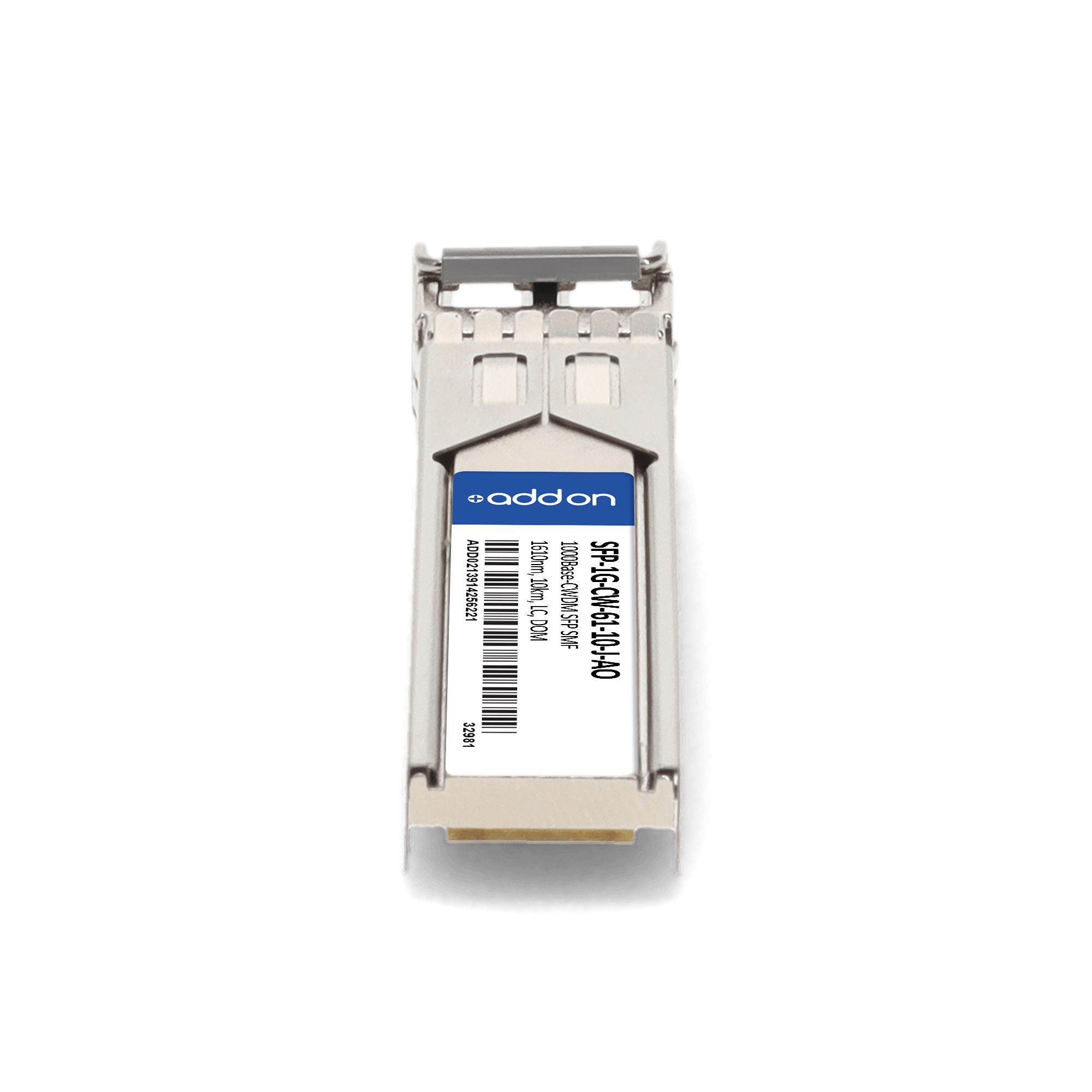 AddOn Networks SFP-1G-CW-61-10-J-AO. SFP transceiver type: Fiber optic, Maximum data transfer rate: 1000 Mbit/s, Interface type: SFP. Product colour: Silver, Brand compatibility: Juniper. Compliance certificates: Trade Agreements Act (TAA). Quantity per pack: 1 pc(s). Package width: 69.8 mm, Package depth: 120.6 mm, Package height: 30.5 mm |