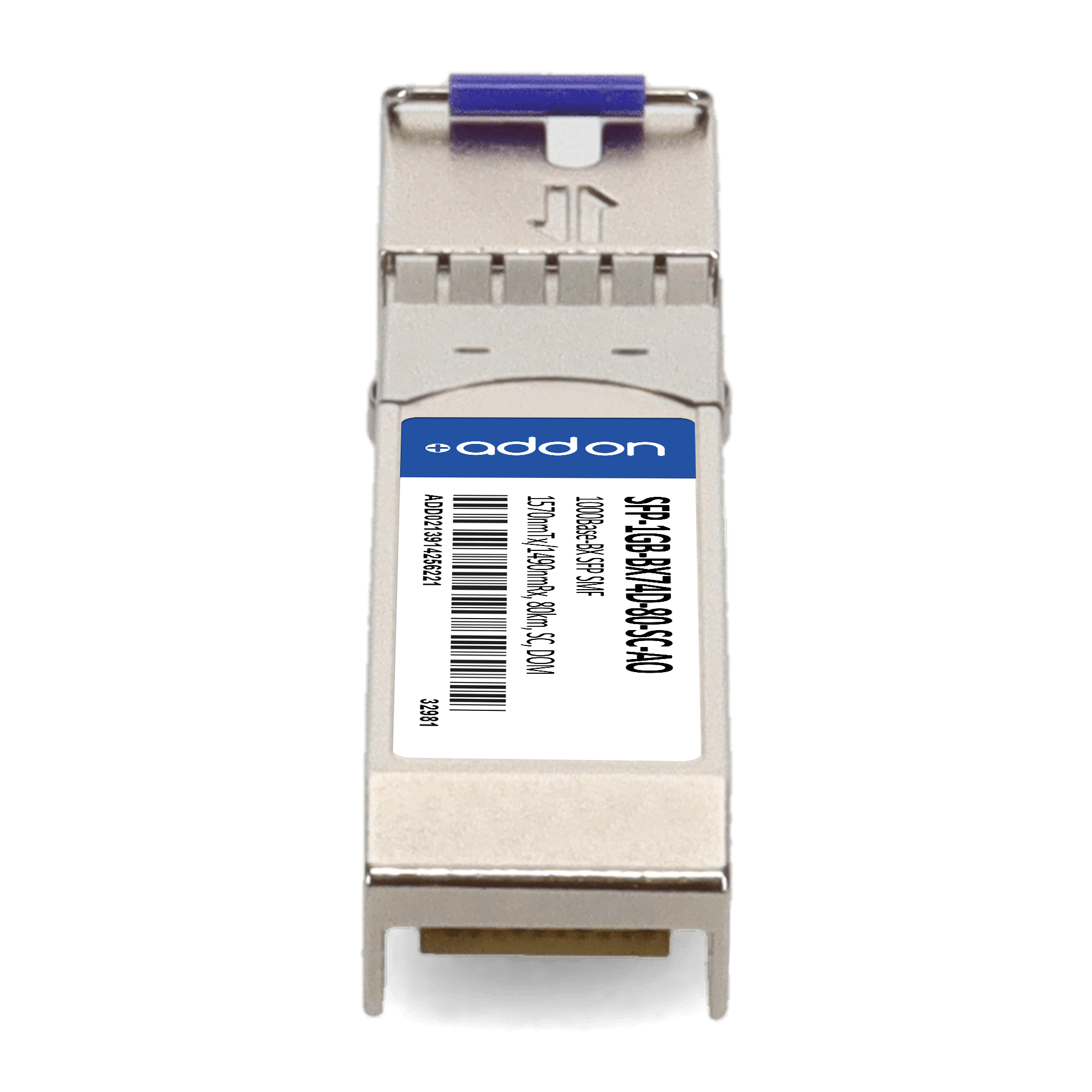 AddOn Networks SFP-1GB-BX74D-80-SC-AO. SFP transceiver type: Fiber optic, Maximum data transfer rate: 1000 Mbit/s, Interface type: SFP. Product colour: Silver, Brand compatibility: MSA Compliant. Compliance certificates: Trade Agreements Act (TAA). Quantity per pack: 1 pc(s). Package width: 69.8 mm, Package depth: 120.6 mm, Package height: 30.5 mm |