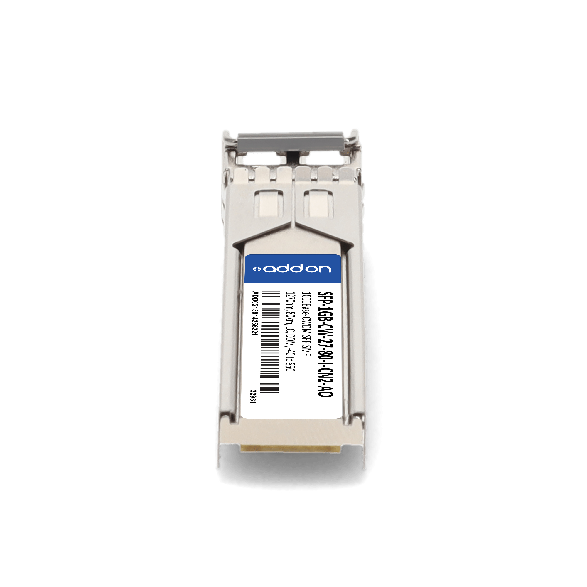 AddOn Networks SFP-1GB-CW-27-80-I-CN2-AO. SFP transceiver type: Fiber optic, Maximum data transfer rate: 1000 Mbit/s, Interface type: SFP. Product colour: Silver, Brand compatibility: Ciena. Compliance certificates: Trade Agreements Act (TAA). Quantity per pack: 1 pc(s). Package width: 69.8 mm, Package depth: 120.6 mm, Package height: 30.5 mm |