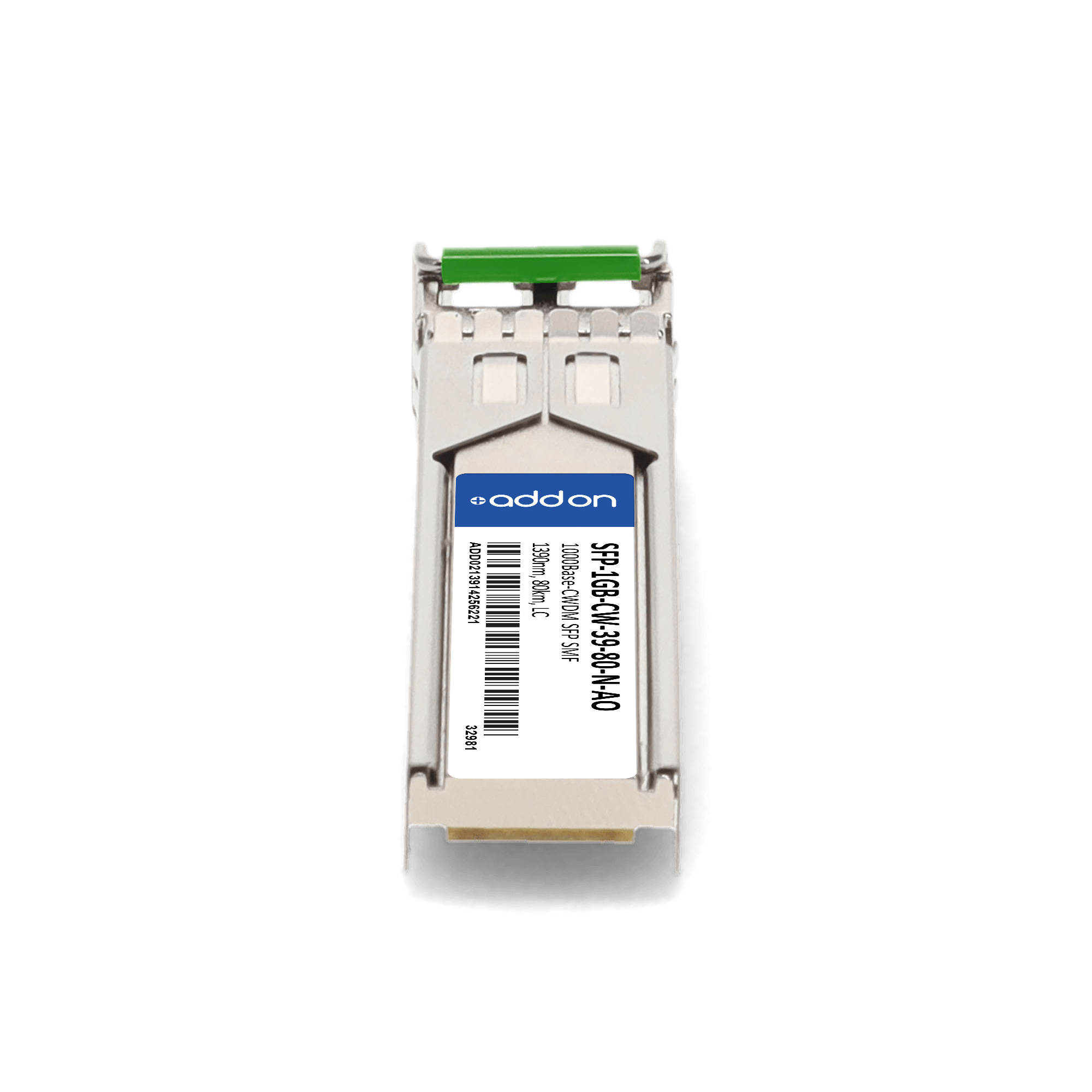 AddOn Networks SFP-1GB-CW-39-80-N-AO. SFP transceiver type: Fiber optic, Maximum data transfer rate: 1000 Mbit/s, Interface type: SFP. Product colour: Silver, Brand compatibility: Alcatel-Lucent / Nokia. Compliance certificates: Trade Agreements Act (TAA). Quantity per pack: 1 pc(s). Package width: 69.8 mm, Package depth: 120.6 mm, Package height: 30.5 mm |