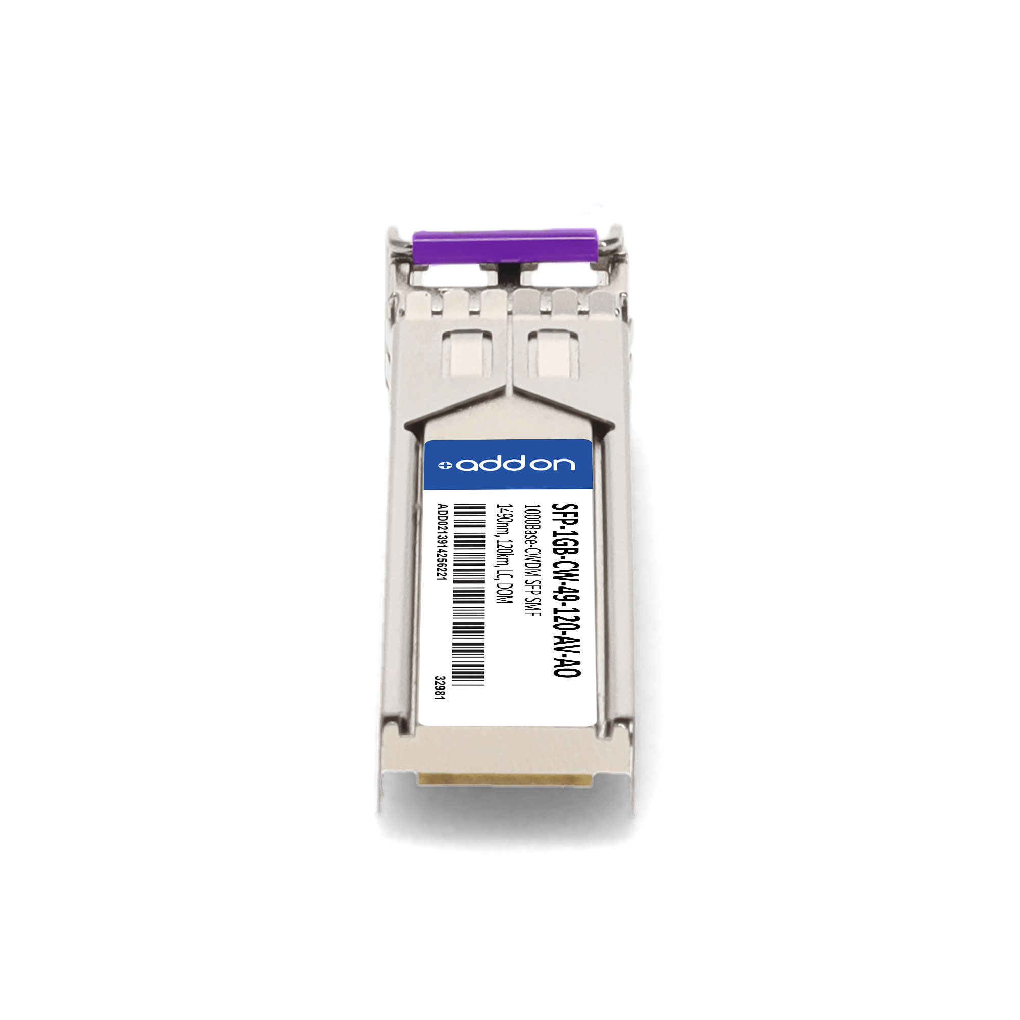 AddOn Networks SFP-1GB-CW-49-120-AV-AO. SFP transceiver type: Fiber optic, Maximum data transfer rate: 1000 Mbit/s, Interface type: SFP. Product colour: Silver, Brand compatibility: ADVA. Compliance certificates: Trade Agreements Act (TAA). Quantity per pack: 1 pc(s). Package width: 69.8 mm, Package depth: 120.6 mm, Package height: 30.5 mm |