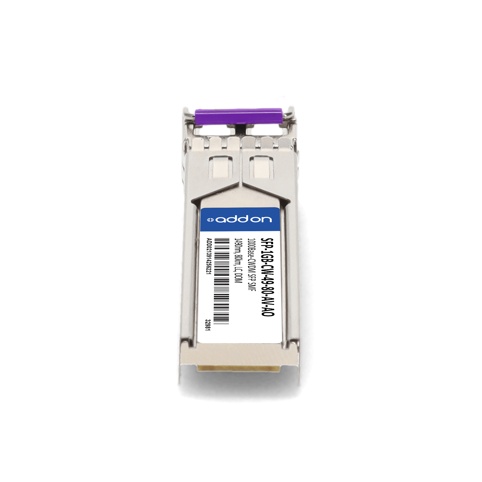 AddOn Networks SFP-1GB-CW-49-80-AV-AO. SFP transceiver type: Fiber optic, Maximum data transfer rate: 1000 Mbit/s, Interface type: SFP. Product colour: Silver, Brand compatibility: ADVA. Compliance certificates: Trade Agreements Act (TAA). Quantity per pack: 1 pc(s). Package width: 69.8 mm, Package depth: 120.6 mm, Package height: 30.5 mm |