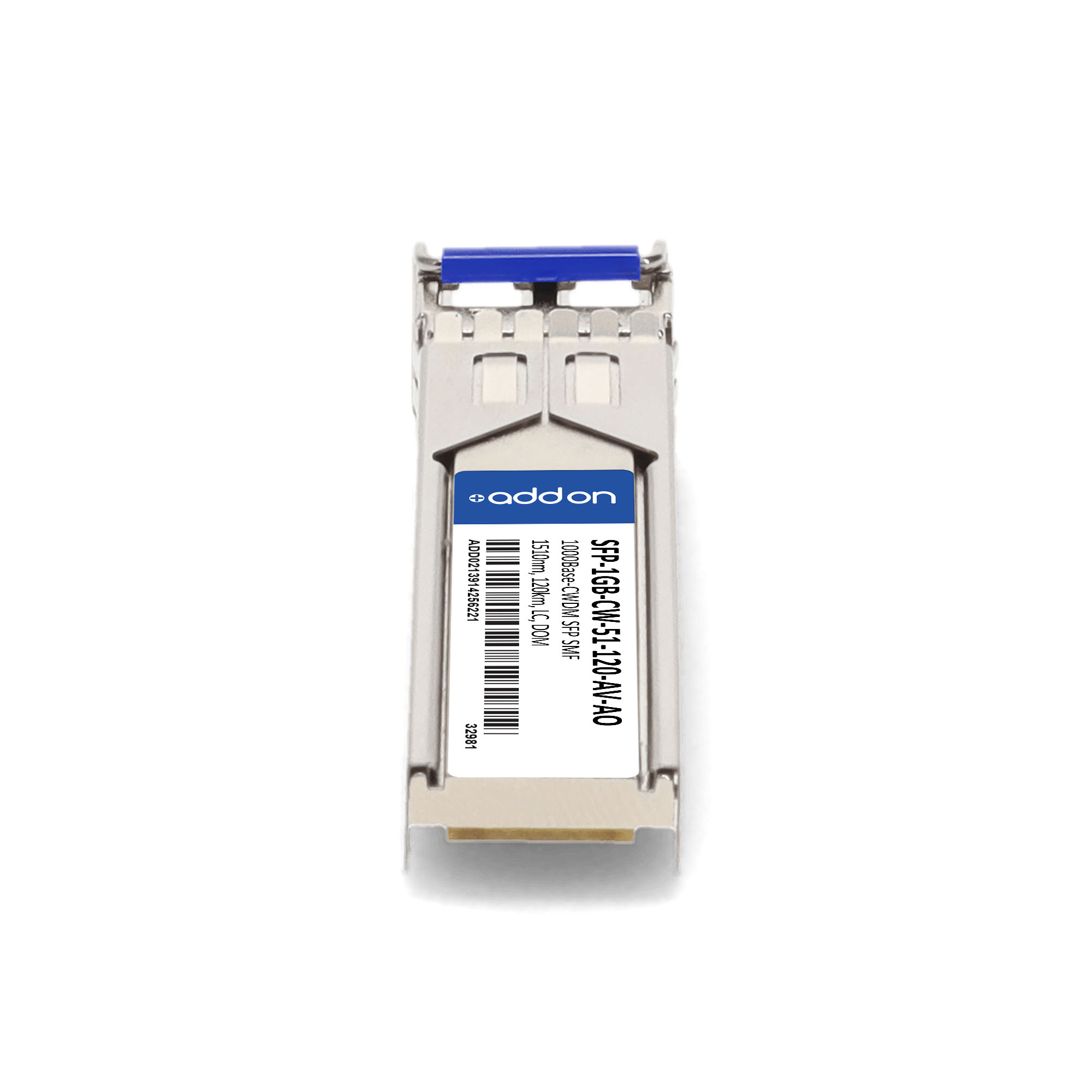 AddOn Networks SFP-1GB-CW-51-120-AV-AO. SFP transceiver type: Fiber optic, Maximum data transfer rate: 1000 Mbit/s, Interface type: SFP. Product colour: Silver, Brand compatibility: ADVA. Compliance certificates: Trade Agreements Act (TAA). Quantity per pack: 1 pc(s). Package width: 69.8 mm, Package depth: 120.6 mm, Package height: 30.5 mm |