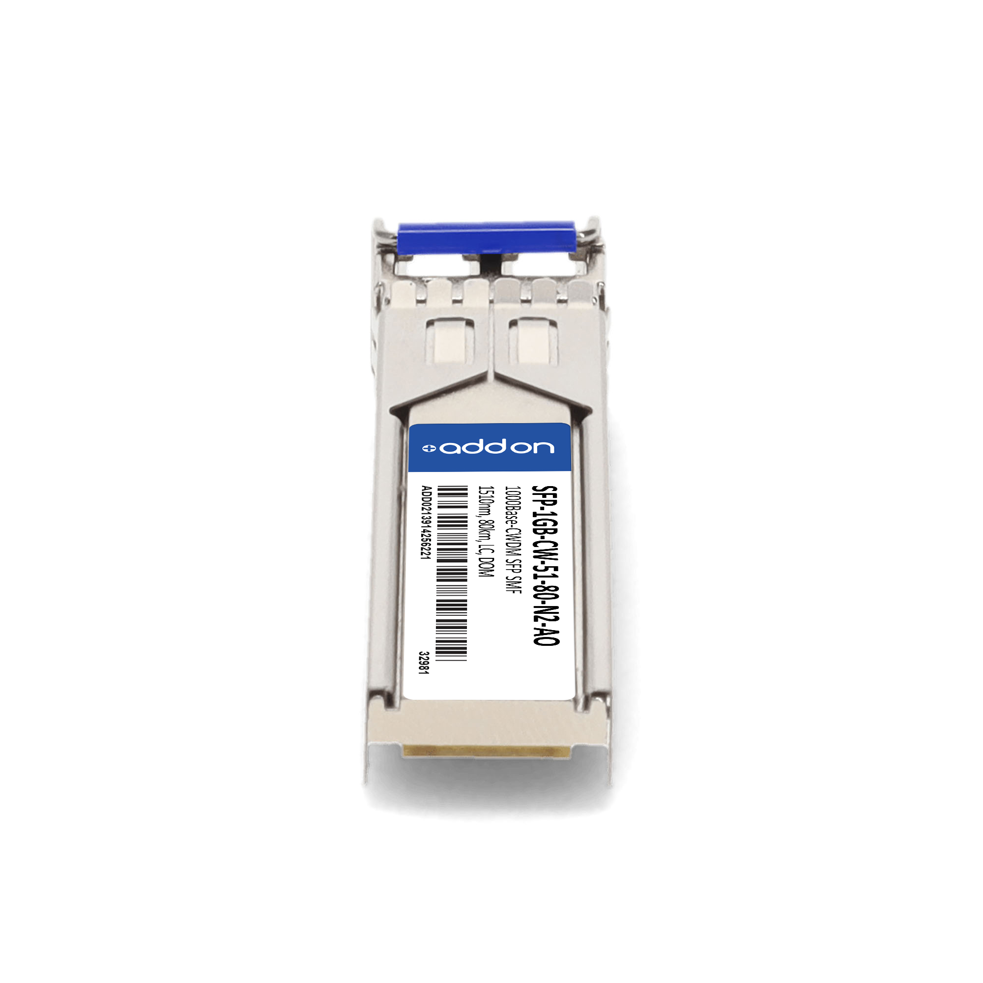 AddOn Networks SFP-1GB-CW-51-80-N2-AO. SFP transceiver type: Fiber optic, Maximum data transfer rate: 1000 Mbit/s, Interface type: SFP. Product colour: Silver, Brand compatibility: Alcatel-Lucent / Nokia. Compliance certificates: Trade Agreements Act (TAA). Quantity per pack: 1 pc(s). Package width: 69.8 mm, Package depth: 120.6 mm, Package height: 30.5 mm |
