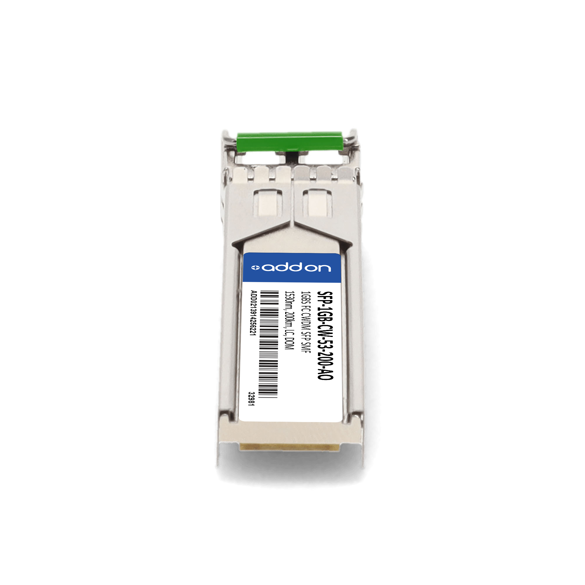 AddOn Networks SFP-1GB-CW-53-200-AO. SFP transceiver type: Fiber optic, Maximum data transfer rate: 1000 Mbit/s, Interface type: SFP. Product colour: Silver, Brand compatibility: MSA Compliant. Compliance certificates: Trade Agreements Act (TAA). Quantity per pack: 1 pc(s). Package width: 69.8 mm, Package depth: 120.6 mm, Package height: 30.5 mm |