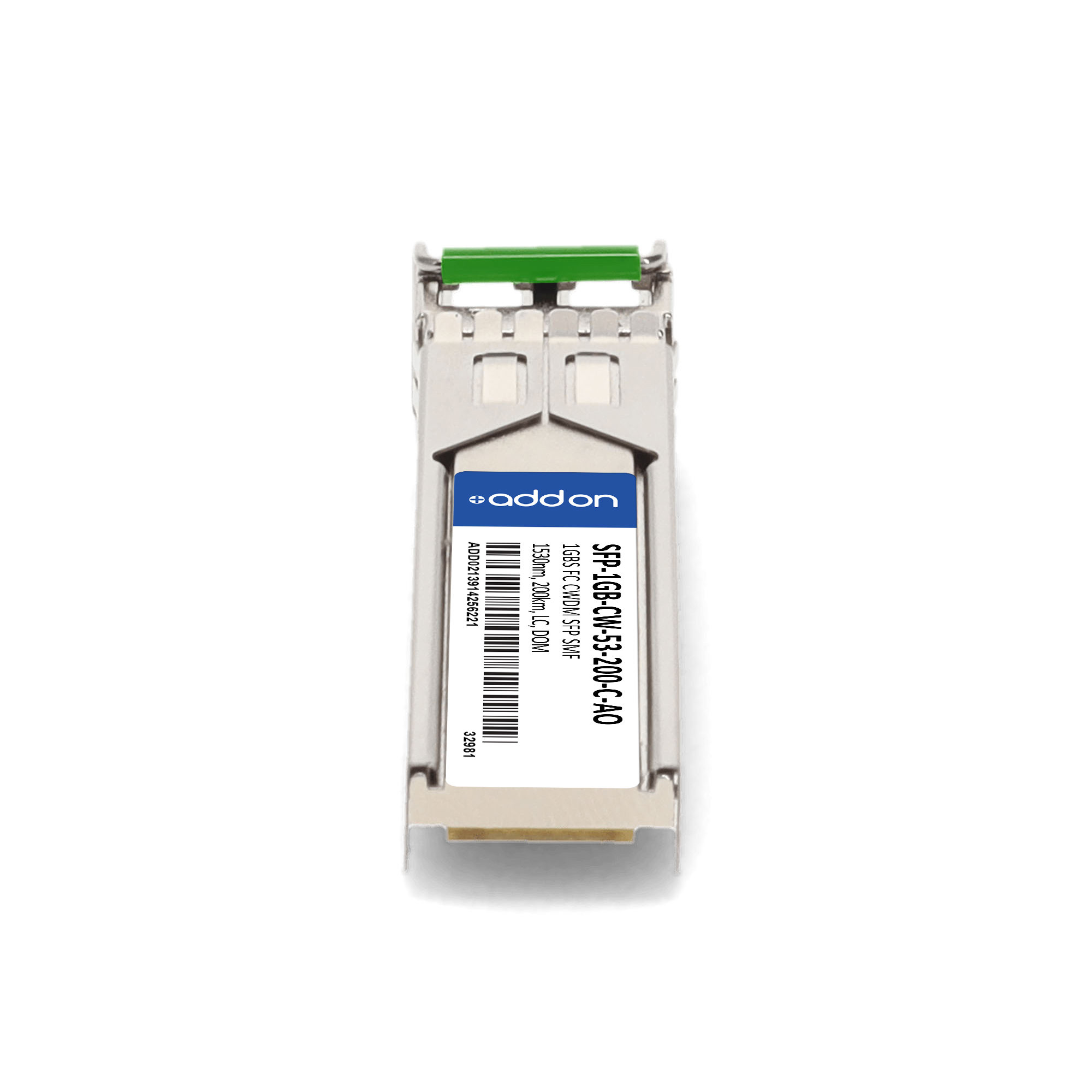 AddOn Networks SFP-1GB-CW-53-200-C-AO. SFP transceiver type: Fiber optic, Maximum data transfer rate: 1000 Mbit/s, Interface type: SFP. Product colour: Silver, Brand compatibility: Cisco. Compliance certificates: Trade Agreements Act (TAA). Quantity per pack: 1 pc(s). Package width: 69.8 mm, Package depth: 120.6 mm, Package height: 30.5 mm |