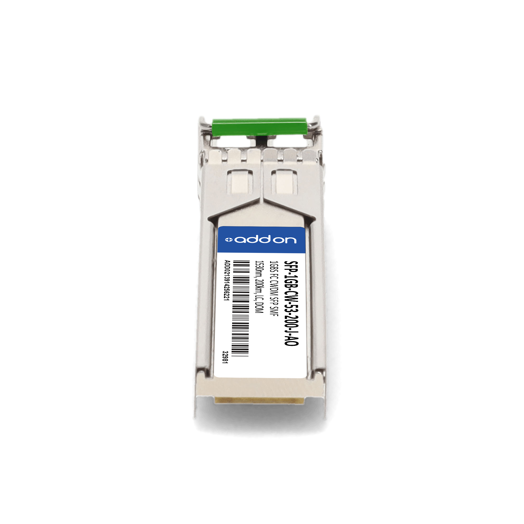 AddOn Networks SFP-1GB-CW-53-200-J-AO. SFP transceiver type: Fiber optic, Maximum data transfer rate: 1000 Mbit/s, Interface type: SFP. Product colour: Silver, Brand compatibility: Juniper. Compliance certificates: Trade Agreements Act (TAA). Quantity per pack: 1 pc(s). Package width: 69.8 mm, Package depth: 120.6 mm, Package height: 30.5 mm |