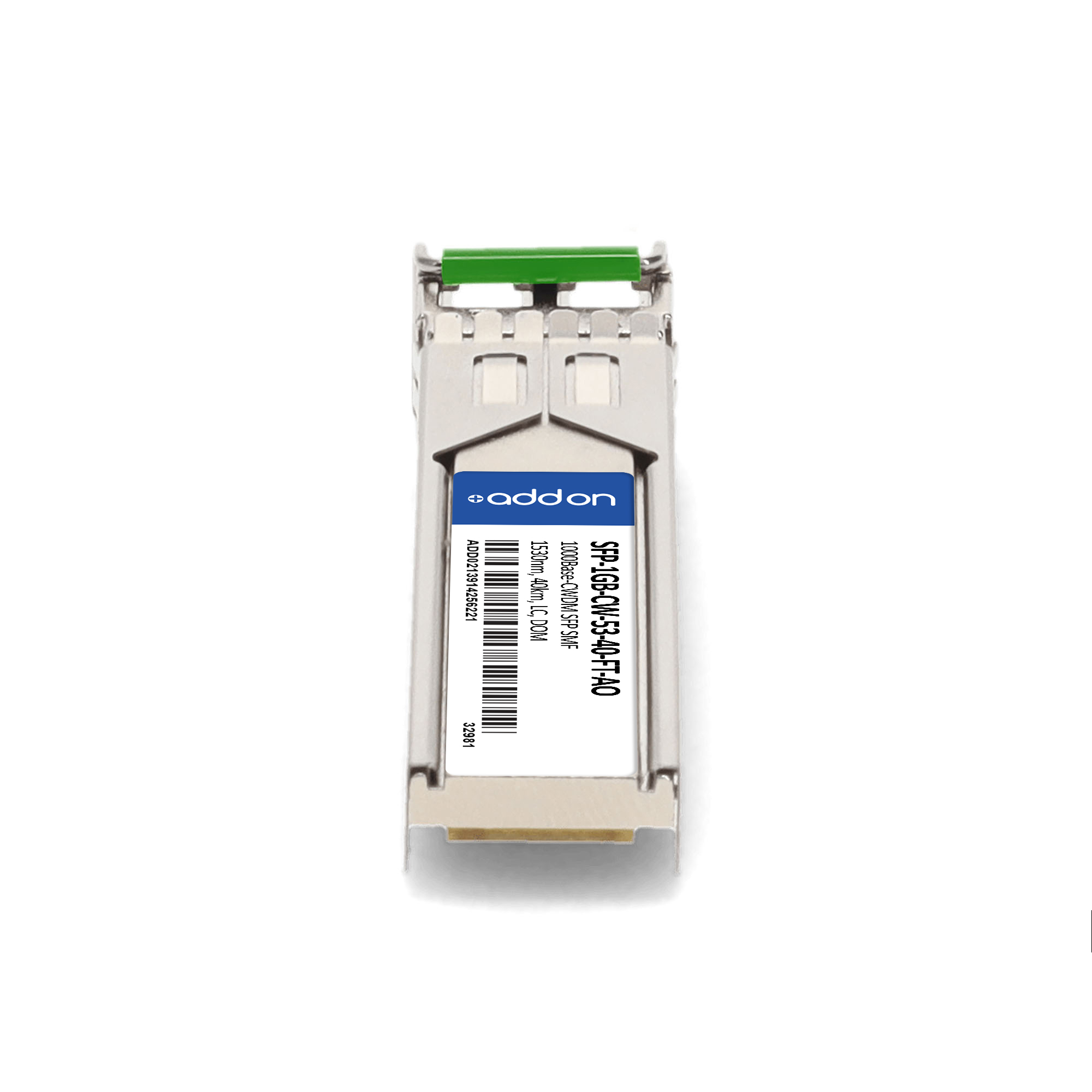 AddOn Networks SFP-1GB-CW-53-40-FT-AO. SFP transceiver type: Fiber optic, Maximum data transfer rate: 1000 Mbit/s, Interface type: SFP. Product colour: Silver, Brand compatibility: Fortinet. Compliance certificates: Trade Agreements Act (TAA). Quantity per pack: 1 pc(s). Package width: 69.8 mm, Package depth: 120.6 mm, Package height: 30.5 mm |