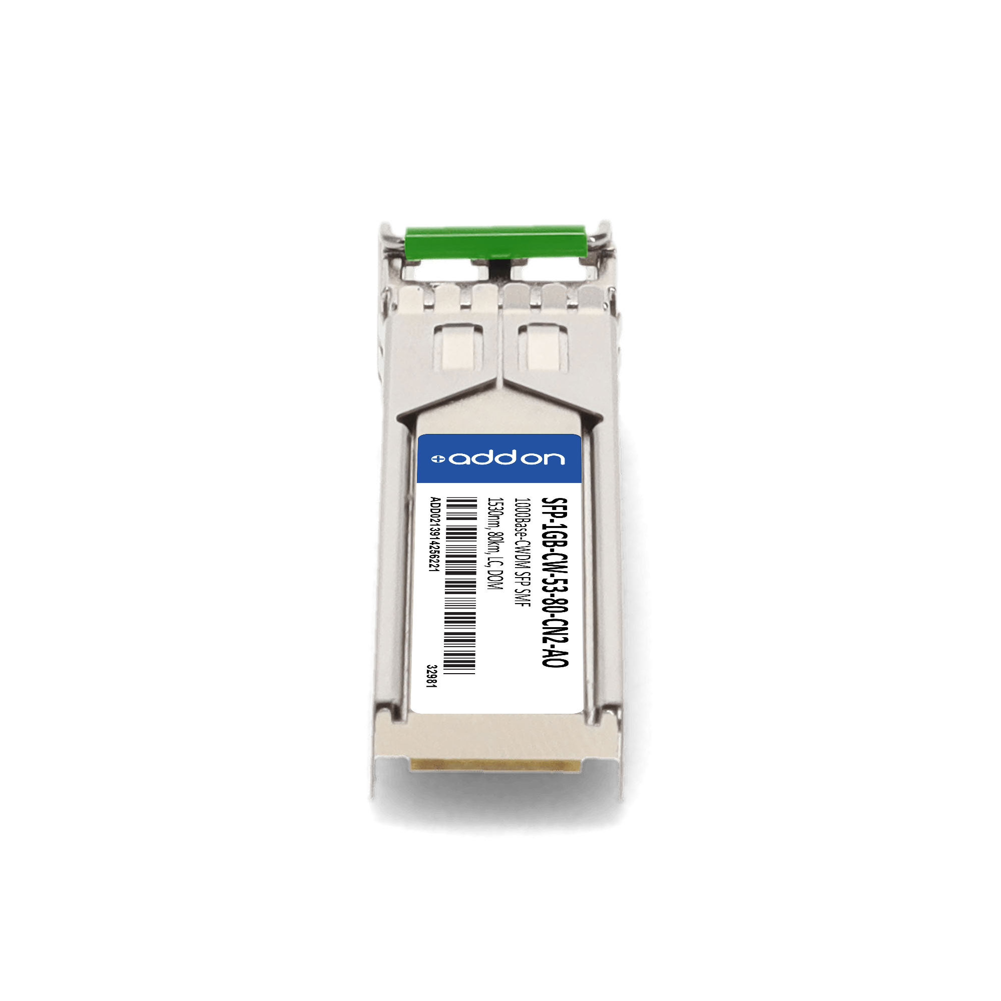 AddOn Networks SFP-1GB-CW-53-80-CN2-AO. SFP transceiver type: Fiber optic, Maximum data transfer rate: 1000 Mbit/s, Interface type: SFP. Product colour: Silver, Brand compatibility: Ciena. Compliance certificates: Trade Agreements Act (TAA). Quantity per pack: 1 pc(s). Package width: 69.8 mm, Package depth: 120.6 mm, Package height: 30.5 mm |