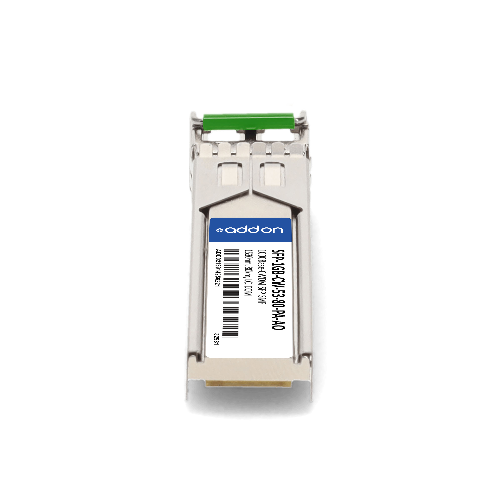 AddOn Networks SFP-1GB-CW-53-80-PA-AO. SFP transceiver type: Fiber optic, Maximum data transfer rate: 1000 Mbit/s, Interface type: SFP. Product colour: Silver, Brand compatibility: Palo Alto Networks. Compliance certificates: Trade Agreements Act (TAA). Quantity per pack: 1 pc(s). Package width: 69.8 mm, Package depth: 120.6 mm, Package height: 30.5 mm |