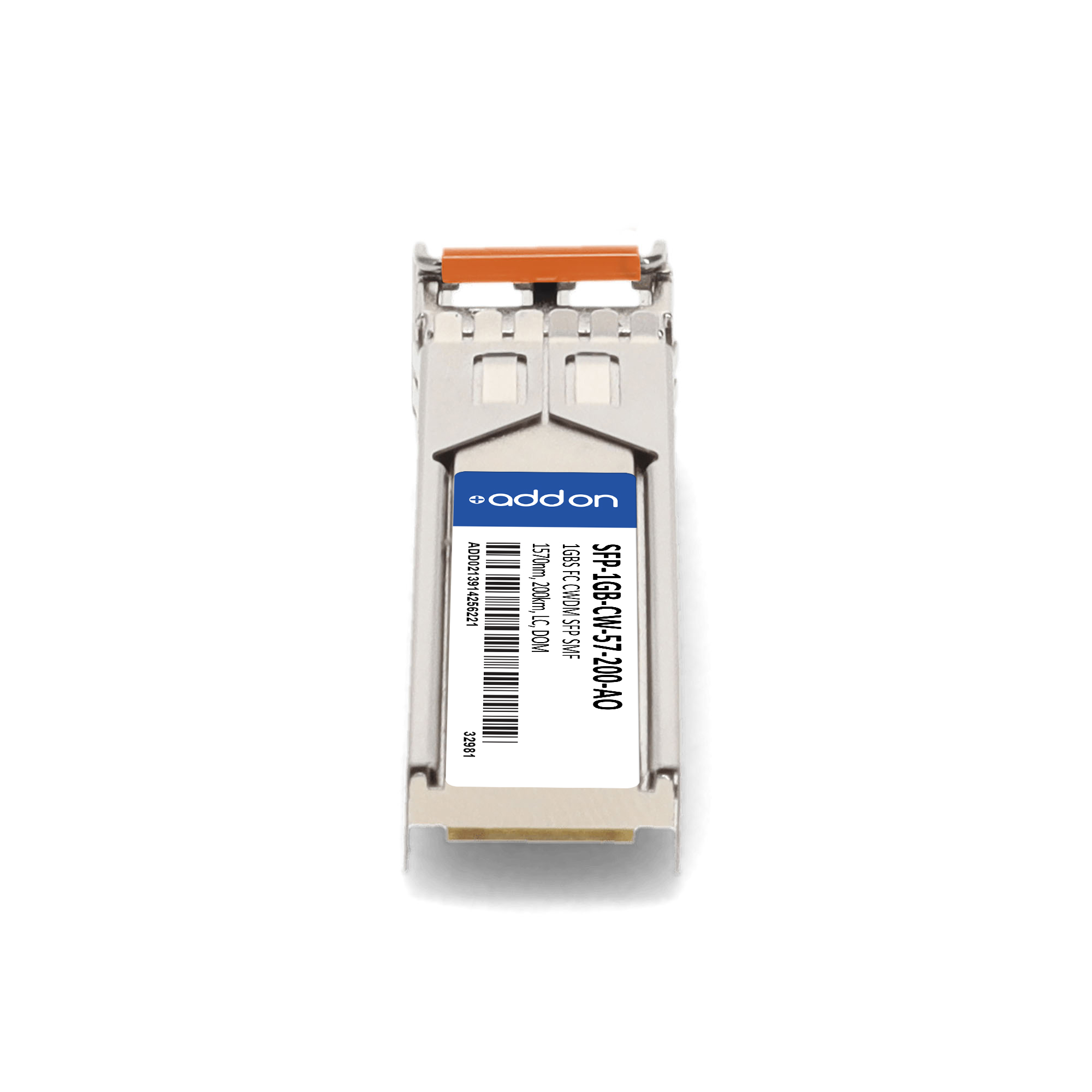 AddOn Networks SFP-1GB-CW-57-200-AO. SFP transceiver type: Fiber optic, Maximum data transfer rate: 1000 Mbit/s, Interface type: SFP. Product colour: Silver, Brand compatibility: MSA Compliant. Compliance certificates: Trade Agreements Act (TAA). Quantity per pack: 1 pc(s). Package width: 69.8 mm, Package depth: 120.6 mm, Package height: 30.5 mm |