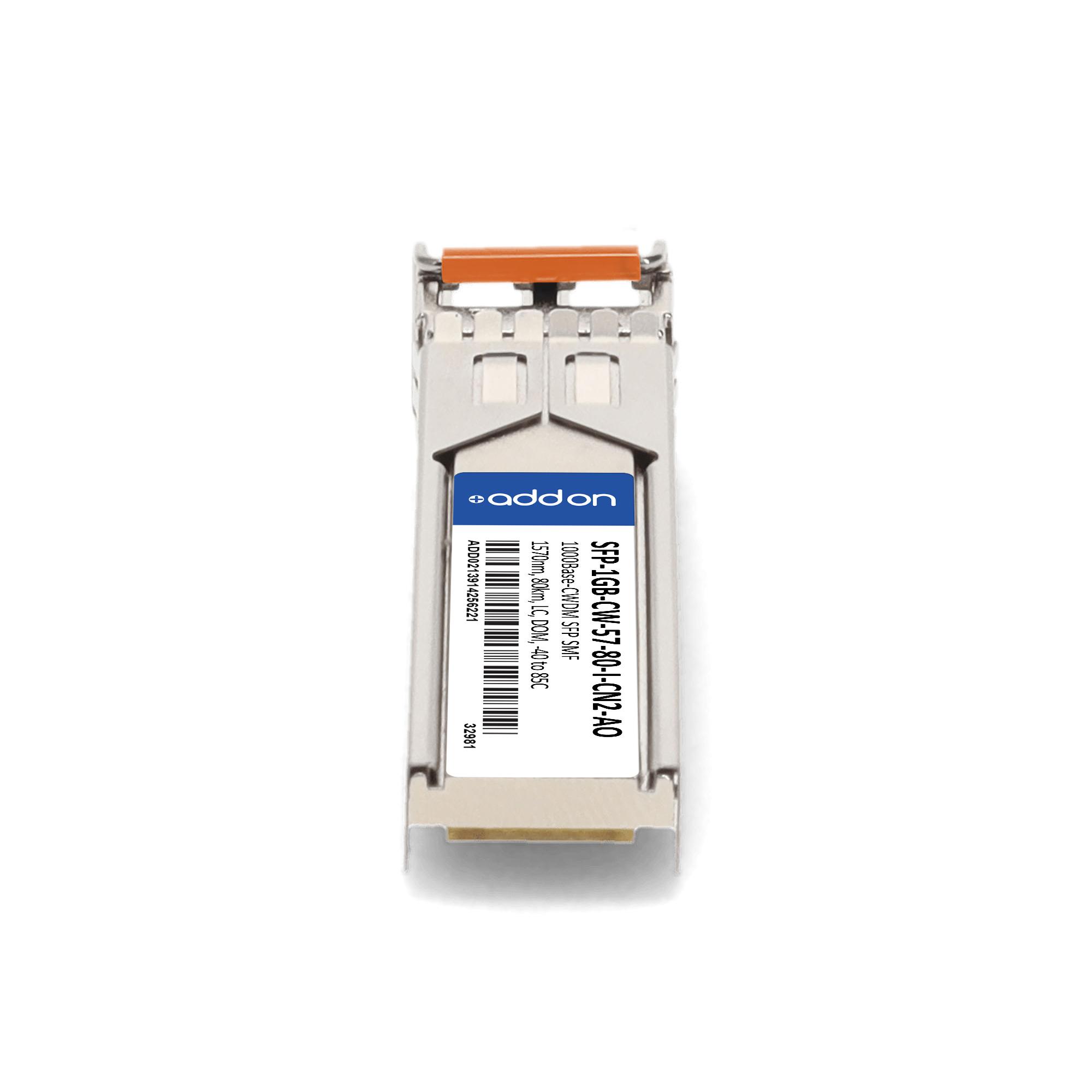 AddOn Networks SFP-1GB-CW-57-80-I-CN2-AO. SFP transceiver type: Fiber optic, Maximum data transfer rate: 1000 Mbit/s, Interface type: SFP. Product colour: Silver, Brand compatibility: Ciena. Compliance certificates: Trade Agreements Act (TAA). Quantity per pack: 1 pc(s). Package width: 69.8 mm, Package depth: 120.6 mm, Package height: 30.5 mm |