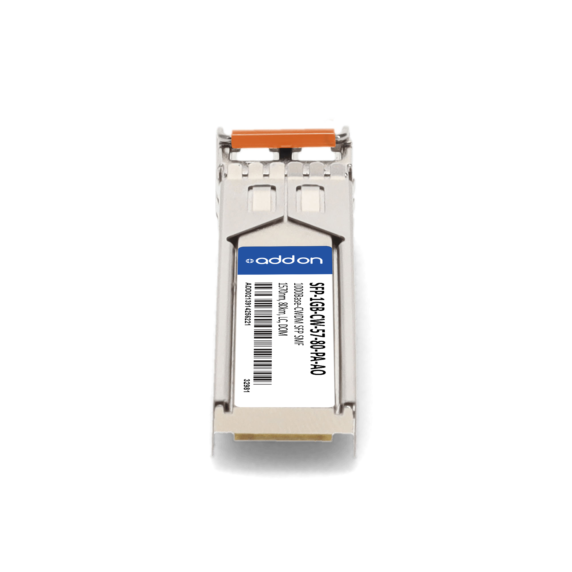 AddOn Networks SFP-1GB-CW-57-80-PA-AO. SFP transceiver type: Fiber optic, Maximum data transfer rate: 1000 Mbit/s, Interface type: SFP. Product colour: Silver, Brand compatibility: Palo Alto Networks. Compliance certificates: Trade Agreements Act (TAA). Quantity per pack: 1 pc(s). Package width: 69.8 mm, Package depth: 120.6 mm, Package height: 30.5 mm |