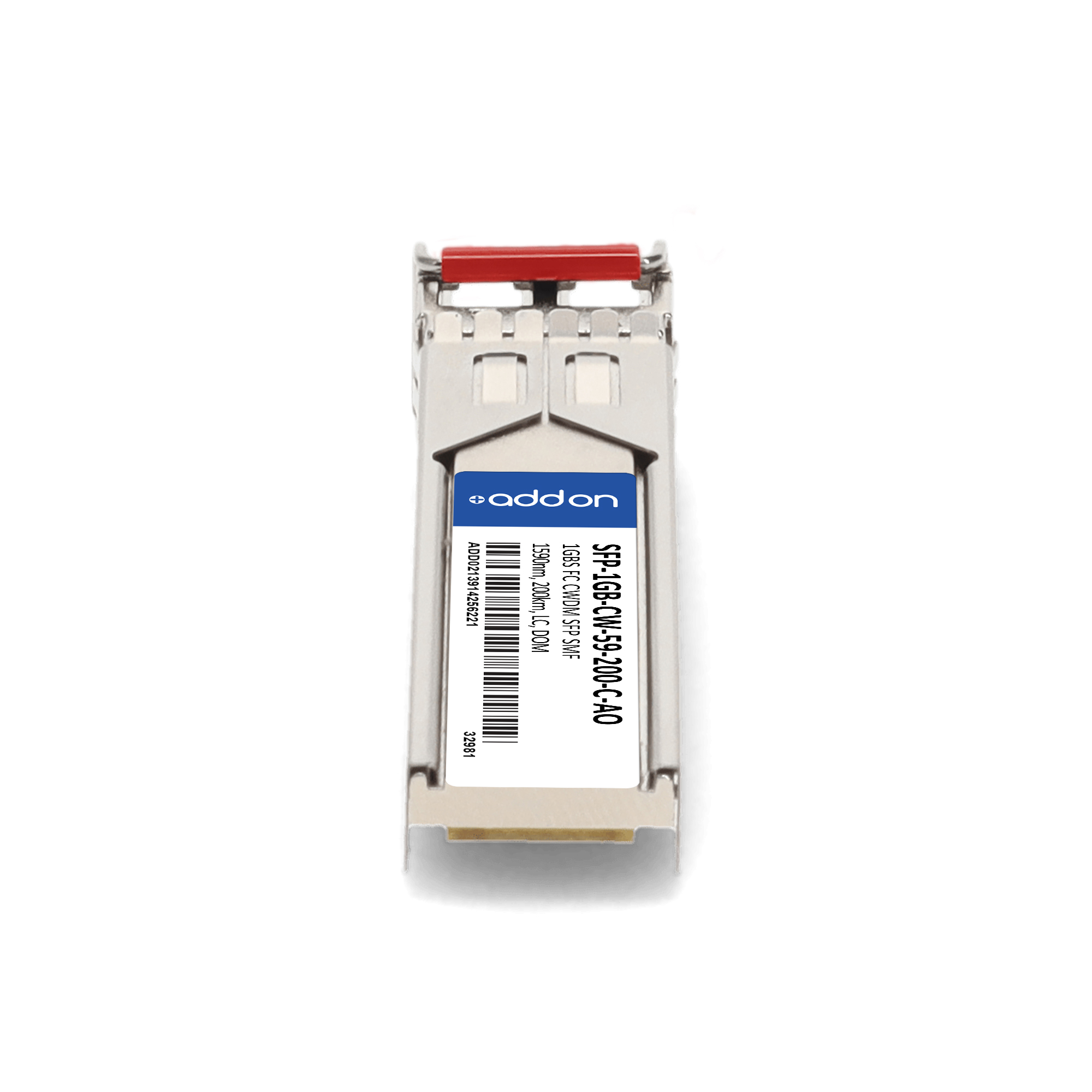 AddOn Networks SFP-1GB-CW-59-200-C-AO. SFP transceiver type: Fiber optic, Maximum data transfer rate: 1000 Mbit/s, Interface type: SFP. Product colour: Silver, Brand compatibility: Cisco. Compliance certificates: Trade Agreements Act (TAA). Quantity per pack: 1 pc(s). Package width: 69.8 mm, Package depth: 120.6 mm, Package height: 30.5 mm |