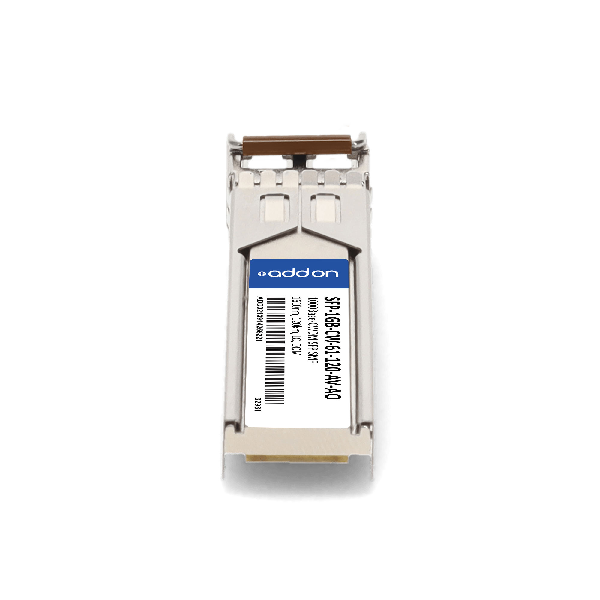 AddOn Networks SFP-1GB-CW-61-120-AV-AO. SFP transceiver type: Fiber optic, Maximum data transfer rate: 1000 Mbit/s, Interface type: SFP. Product colour: Silver, Brand compatibility: ADVA. Compliance certificates: Trade Agreements Act (TAA). Quantity per pack: 1 pc(s). Package width: 69.8 mm, Package depth: 120.6 mm, Package height: 30.5 mm |