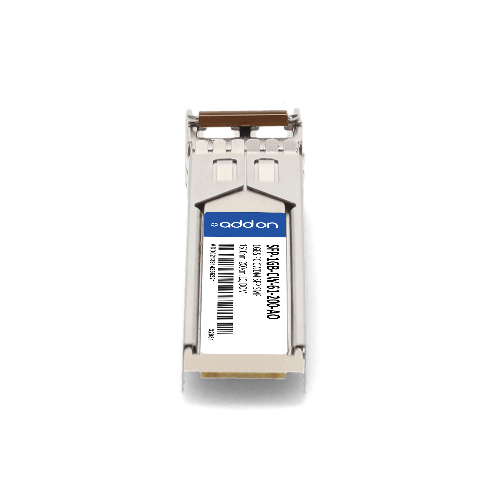 AddOn Networks SFP-1GB-CW-61-200-AO. SFP transceiver type: Fiber optic, Maximum data transfer rate: 1000 Mbit/s, Interface type: SFP. Product colour: Silver, Brand compatibility: MSA Compliant. Compliance certificates: Trade Agreements Act (TAA). Quantity per pack: 1 pc(s). Package width: 69.8 mm, Package depth: 120.6 mm, Package height: 30.5 mm |