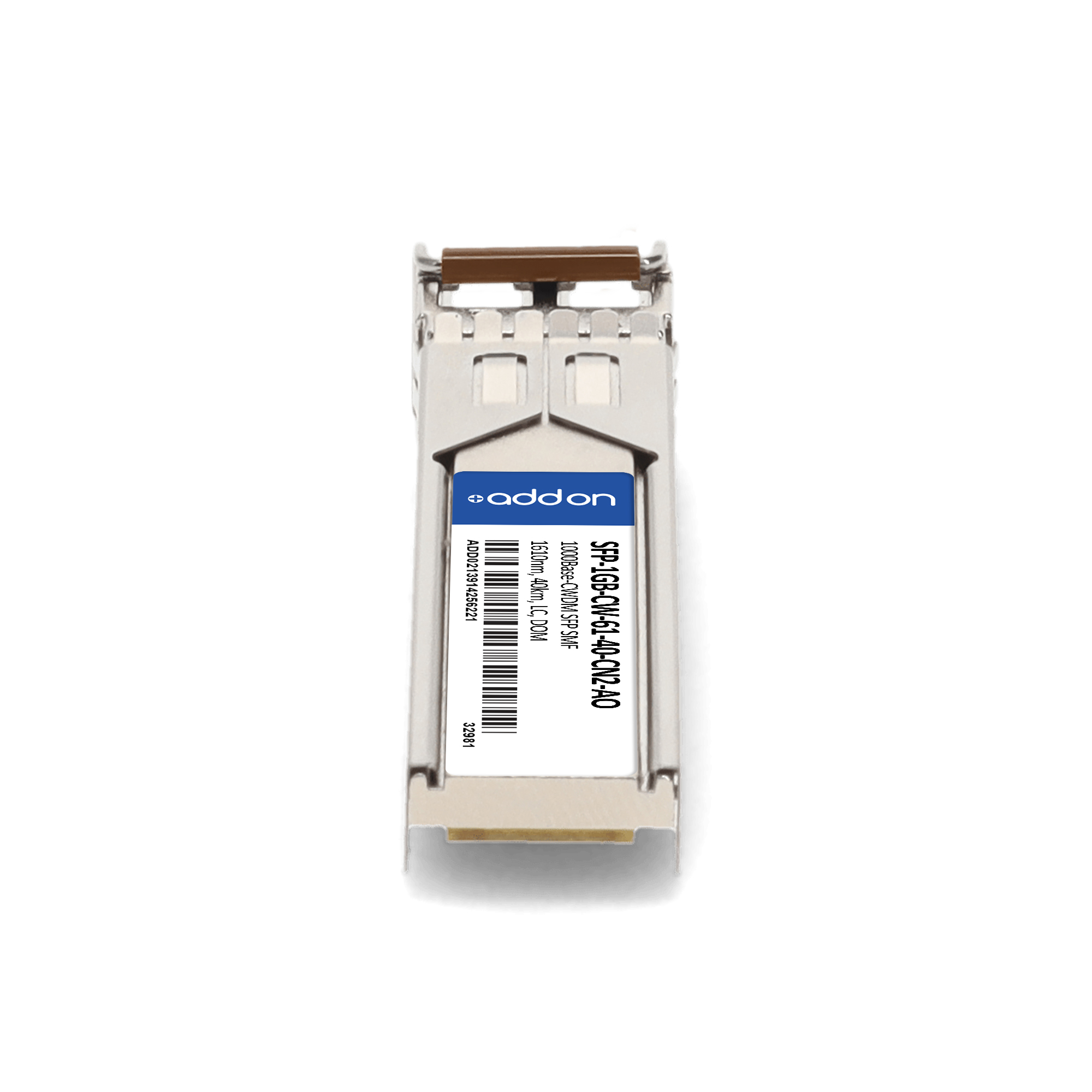AddOn Networks SFP-1GB-CW-61-40-CN2-AO. SFP transceiver type: Fiber optic, Maximum data transfer rate: 1000 Mbit/s, Interface type: SFP. Product colour: Silver, Brand compatibility: Ciena. Compliance certificates: Trade Agreements Act (TAA). Quantity per pack: 1 pc(s). Package width: 69.8 mm, Package depth: 120.6 mm, Package height: 30.5 mm |