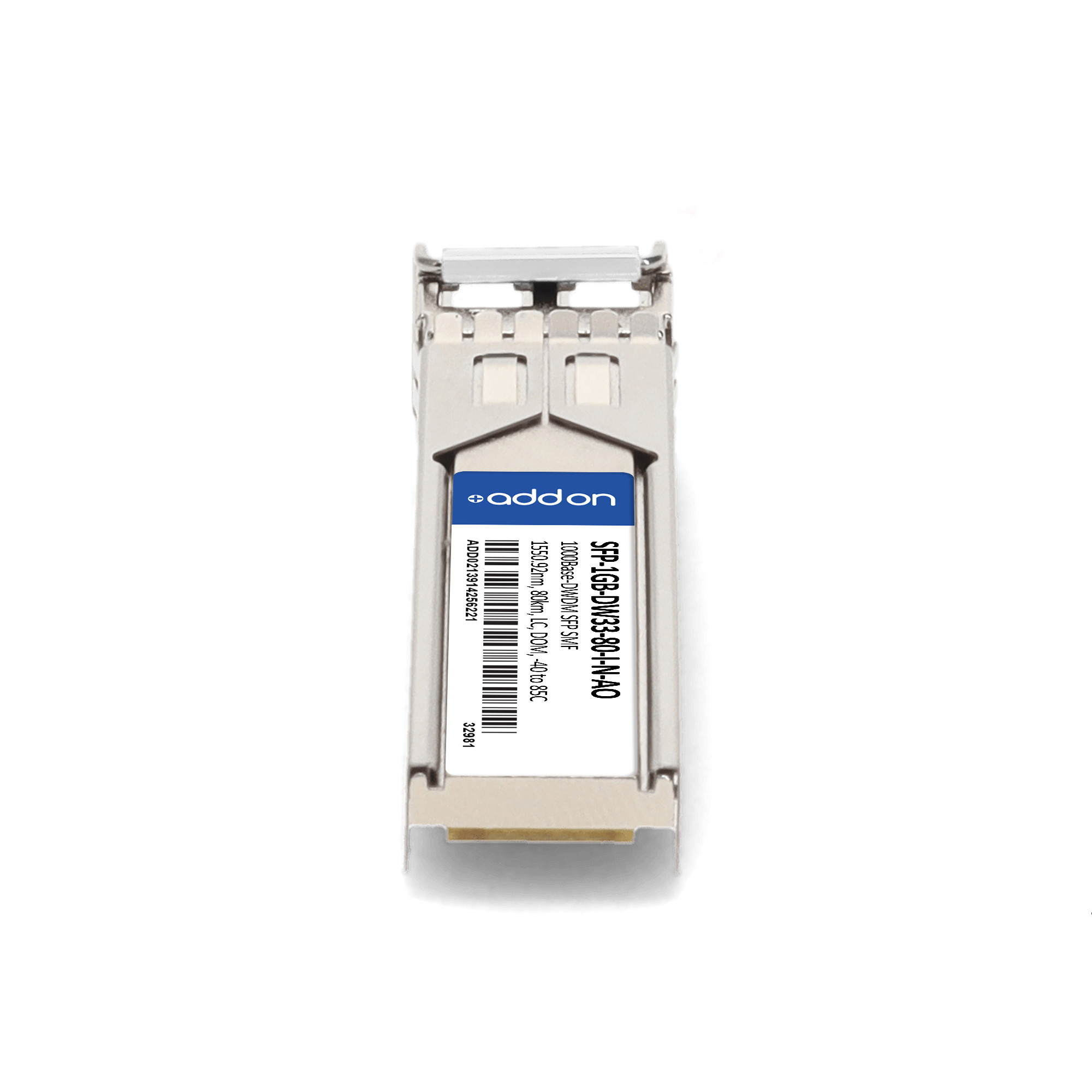AddOn Networks SFP-1GB-DW33-80-I-N-AO. SFP transceiver type: Fiber optic, Maximum data transfer rate: 1000 Mbit/s, Interface type: SFP. Product colour: Silver, Brand compatibility: Alcatel-Lucent / Nokia. Compliance certificates: Trade Agreements Act (TAA). Quantity per pack: 1 pc(s). Package width: 69.8 mm, Package depth: 120.6 mm, Package height: 30.5 mm |