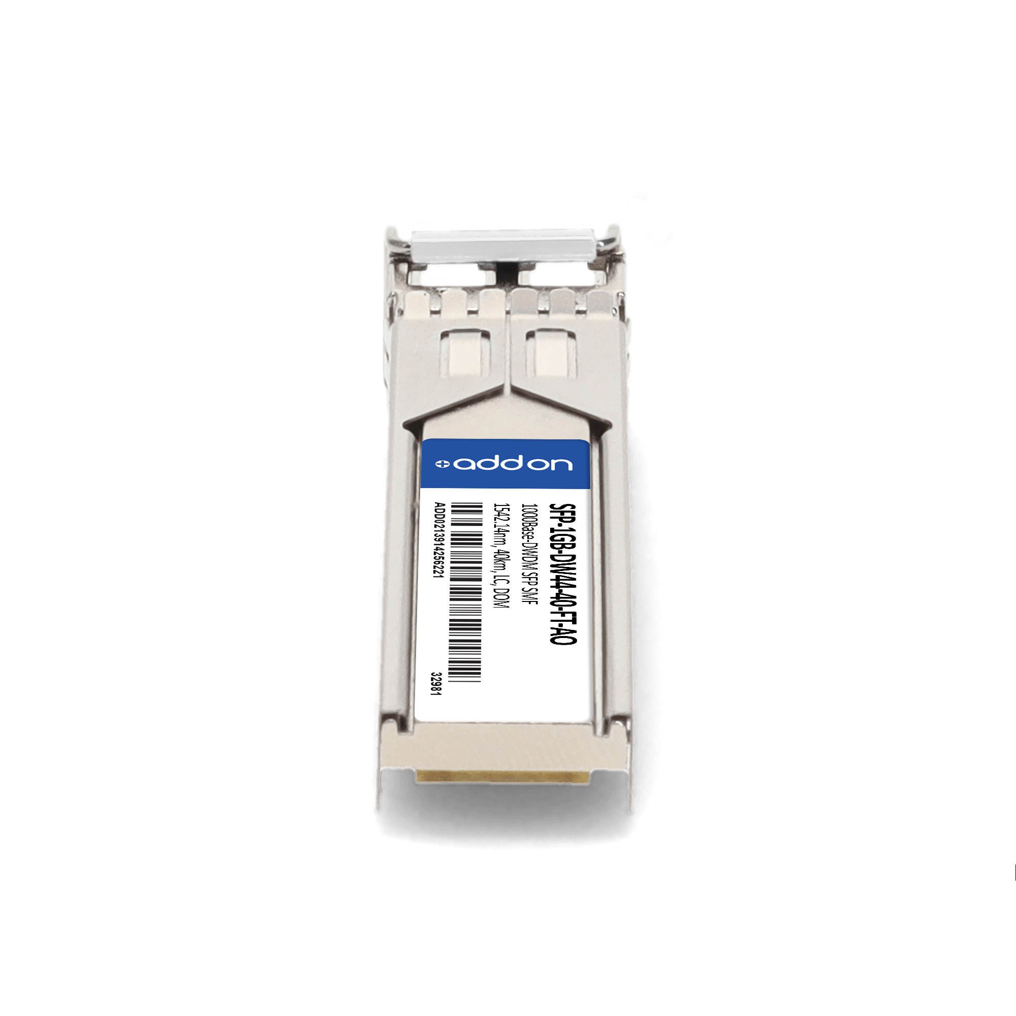 AddOn Networks SFP-1GB-DW44-40-FT-AO. SFP transceiver type: Fiber optic, Maximum data transfer rate: 1000 Mbit/s, Interface type: SFP. Product colour: Silver, Brand compatibility: Fortinet. Compliance certificates: Trade Agreements Act (TAA). Quantity per pack: 1 pc(s). Package width: 69.8 mm, Package depth: 120.6 mm, Package height: 30.5 mm |