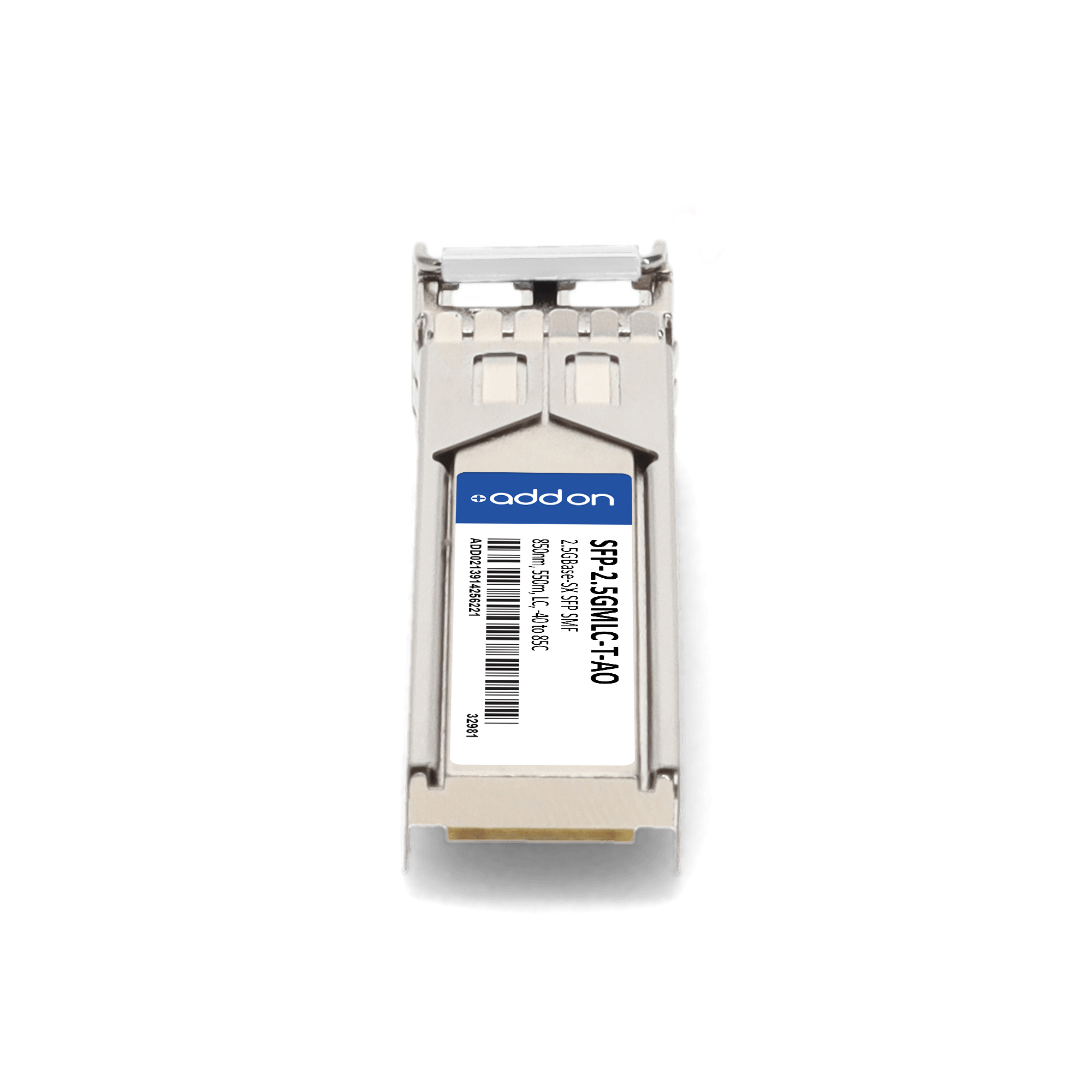AddOn Networks SFP-2.5GMLC-T-AO. SFP transceiver type: Fiber optic, Maximum data transfer rate: 2500 Mbit/s, Interface type: SFP. Product colour: Silver, Brand compatibility: Moxa. Compliance certificates: Trade Agreements Act (TAA). Quantity per pack: 1 pc(s). Package width: 69.8 mm, Package depth: 120.6 mm, Package height: 30.5 mm |