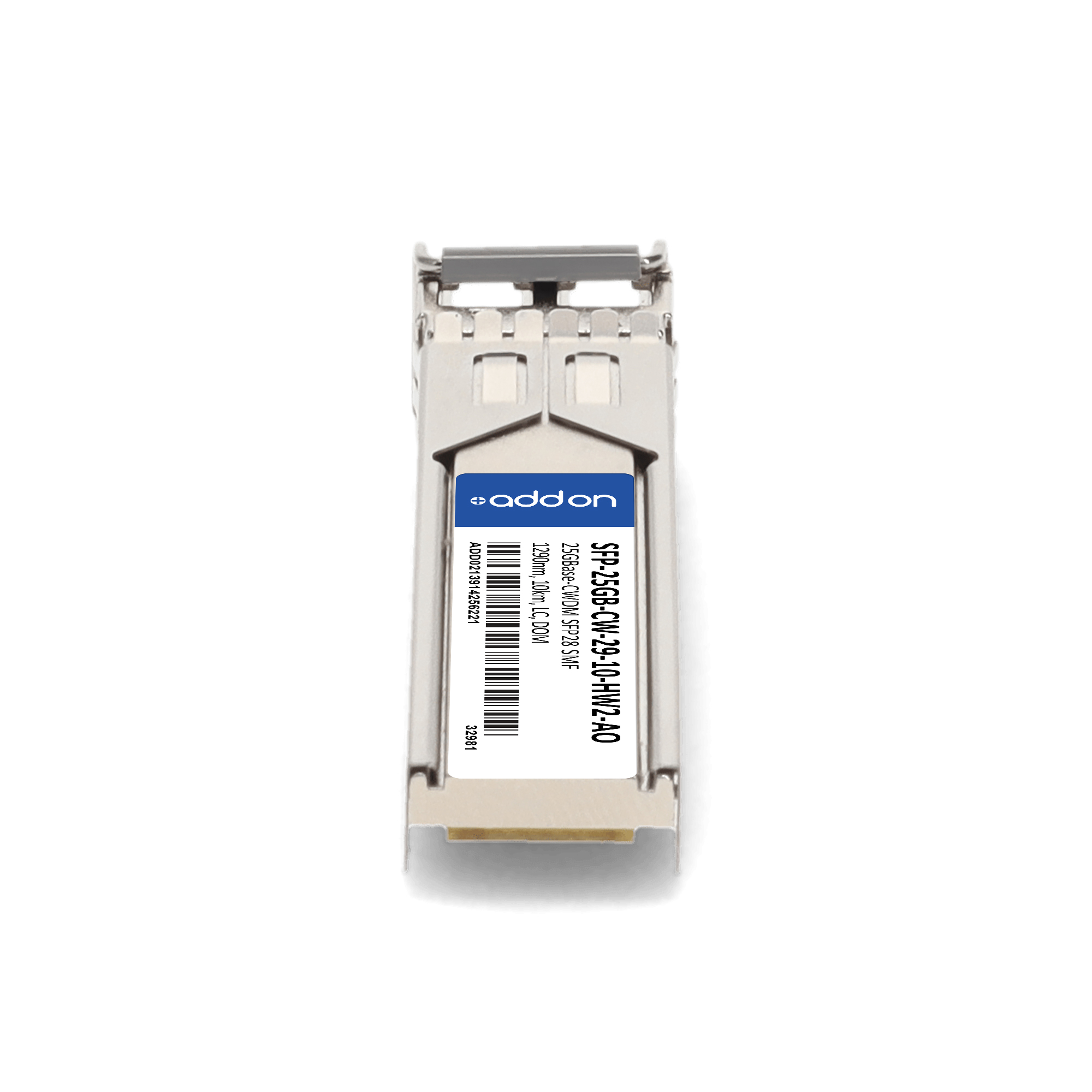 AddOn Networks SFP-25GB-CW-29-10-HW2-AO. SFP transceiver type: Fiber optic, Maximum data transfer rate: 25000 Mbit/s, Interface type: SFP28. Product colour: Silver, Brand compatibility: Huawei. Compliance certificates: Trade Agreements Act (TAA). Quantity per pack: 1 pc(s). Package width: 69.8 mm, Package depth: 120.6 mm, Package height: 30.5 mm |