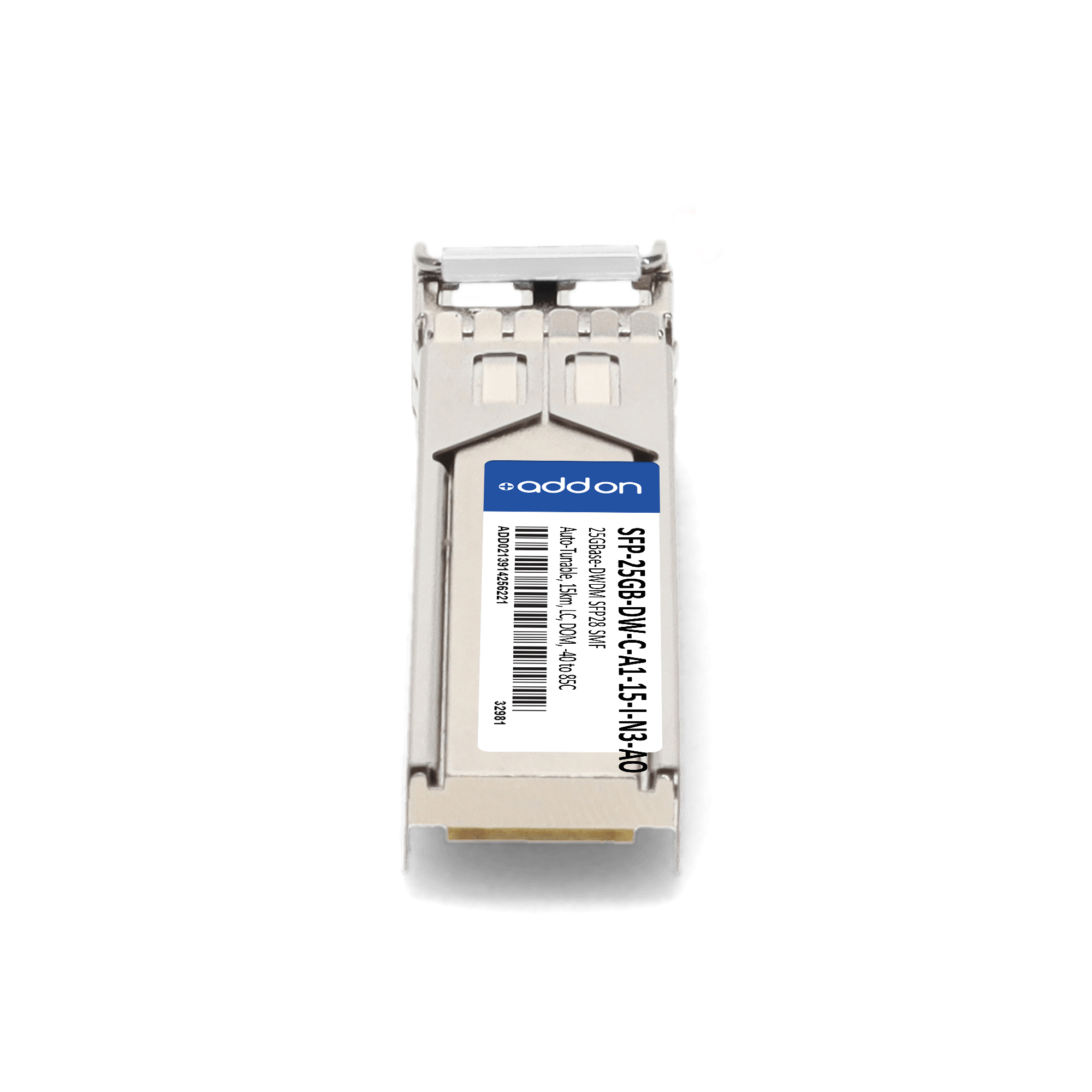AddOn Networks SFP-25GB-DW-C-A1-15-I-N3-AO. SFP transceiver type: Fiber optic, Maximum data transfer rate: 25000 Mbit/s, Interface type: SFP28. Product colour: Silver, Brand compatibility: Alcatel-Lucent / Nokia. Compliance certificates: Trade Agreements Act (TAA). Quantity per pack: 1 pc(s). Package width: 69.8 mm, Package depth: 120.6 mm, Package height: 30.5 mm |