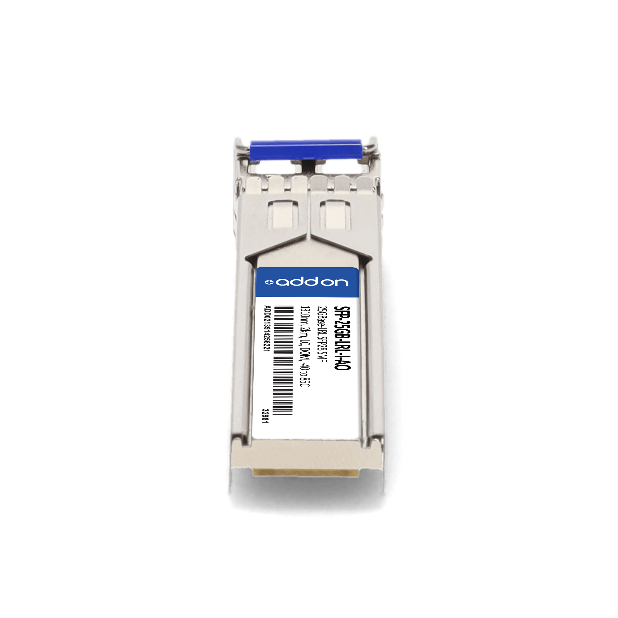 AddOn Networks SFP-25GB-LRL-I-AO. SFP transceiver type: Fiber optic, Maximum data transfer rate: 25000 Mbit/s, Interface type: SFP28. Product colour: Silver, Brand compatibility: MSA Compliant. Compliance certificates: Trade Agreements Act (TAA). Quantity per pack: 1 pc(s). Package width: 69.8 mm, Package depth: 120.6 mm, Package height: 30.5 mm |