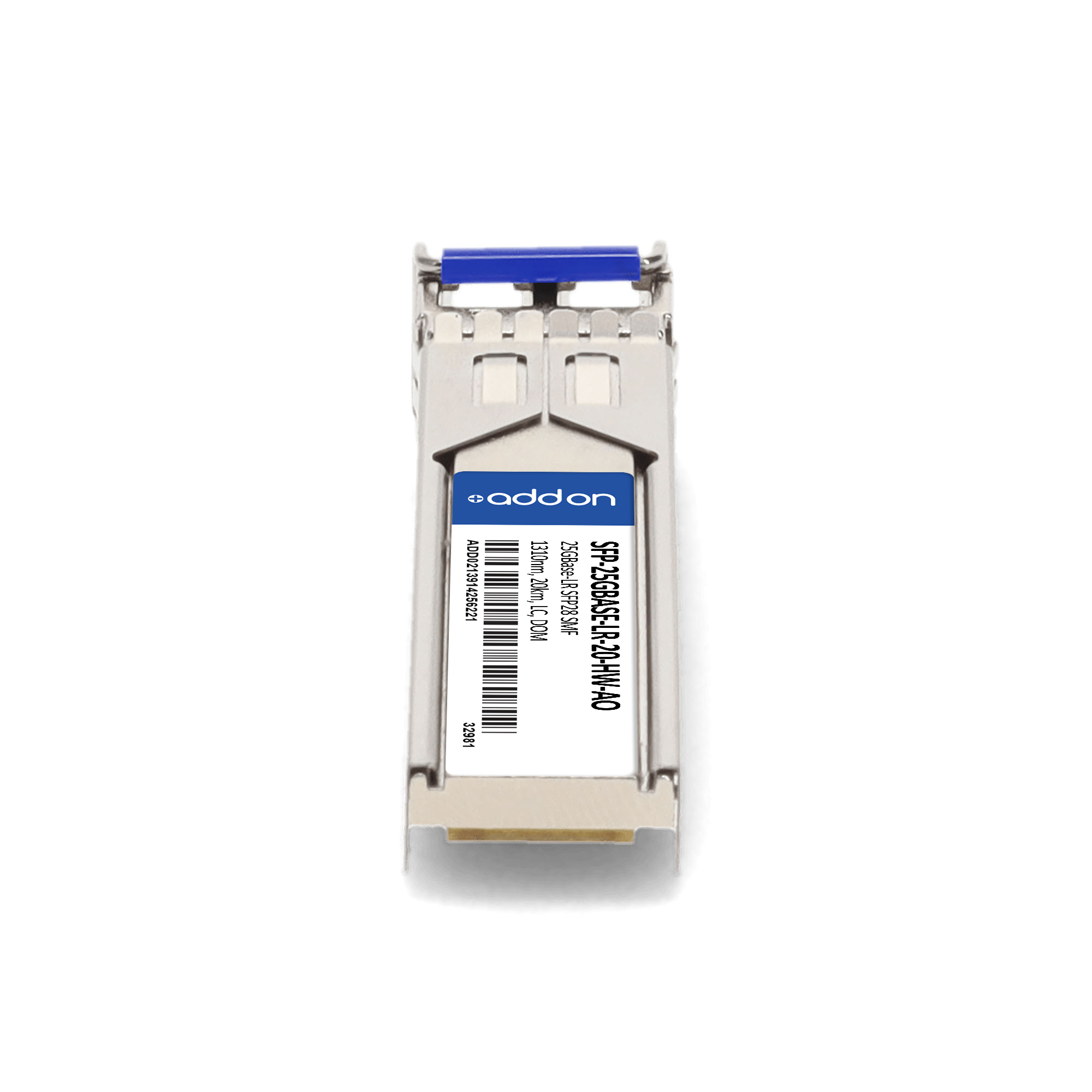 AddOn Networks SFP-25GBASE-LR-20-HW-AO. SFP transceiver type: Fiber optic, Maximum data transfer rate: 25000 Mbit/s, Interface type: SFP28. Product colour: Silver, Brand compatibility: Huawei. Compliance certificates: Trade Agreements Act (TAA). Quantity per pack: 1 pc(s). Package width: 69.8 mm, Package depth: 120.6 mm, Package height: 30.5 mm |