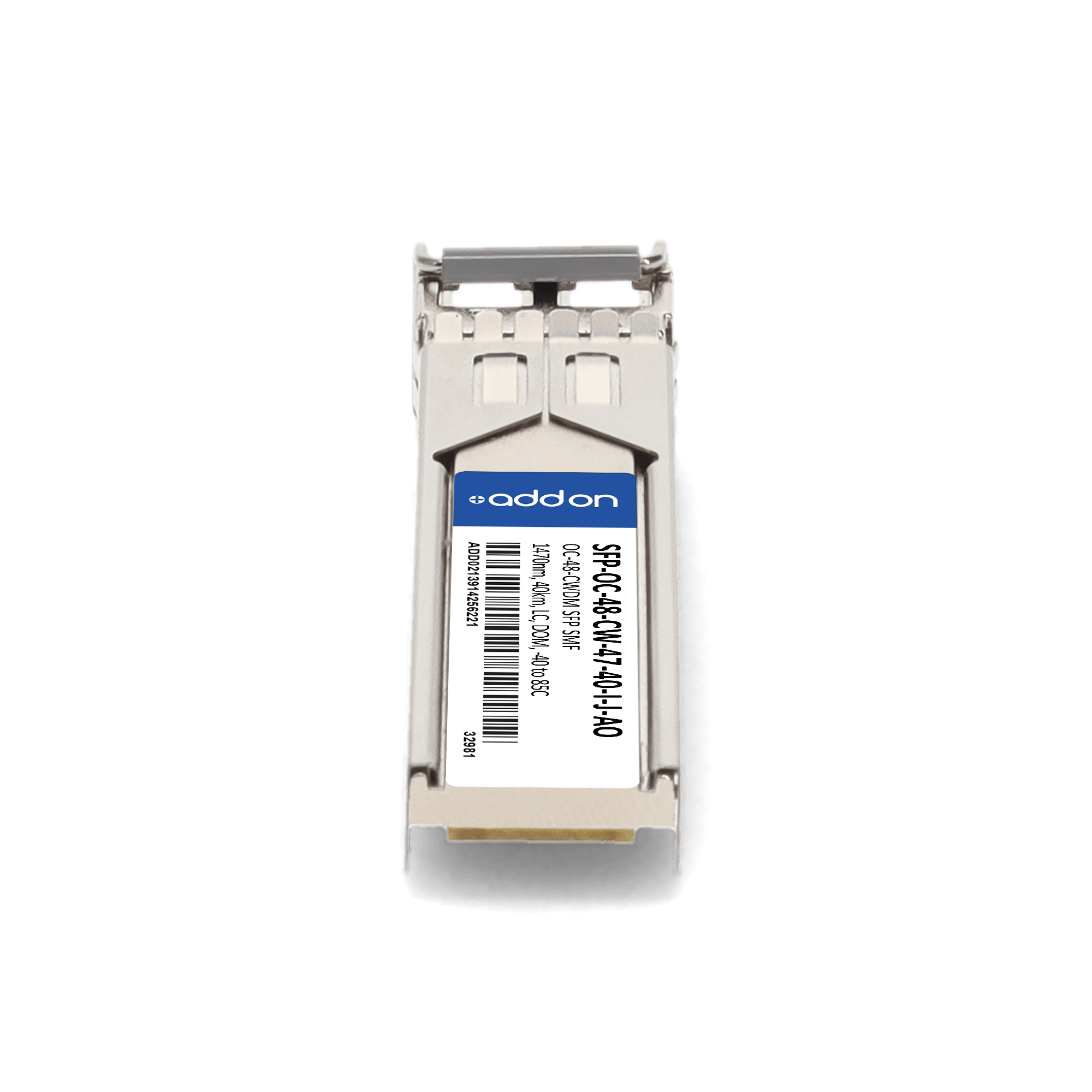 AddOn Networks SFP-OC-48-CW-47-40-I-J-AO. SFP transceiver type: Fiber optic, Maximum data transfer rate: 40000 Mbit/s, Interface type: SFP. Product colour: Silver, Brand compatibility: Juniper. Compliance certificates: Trade Agreements Act (TAA). Quantity per pack: 1 pc(s). Package width: 69.8 mm, Package depth: 120.6 mm, Package height: 30.5 mm |