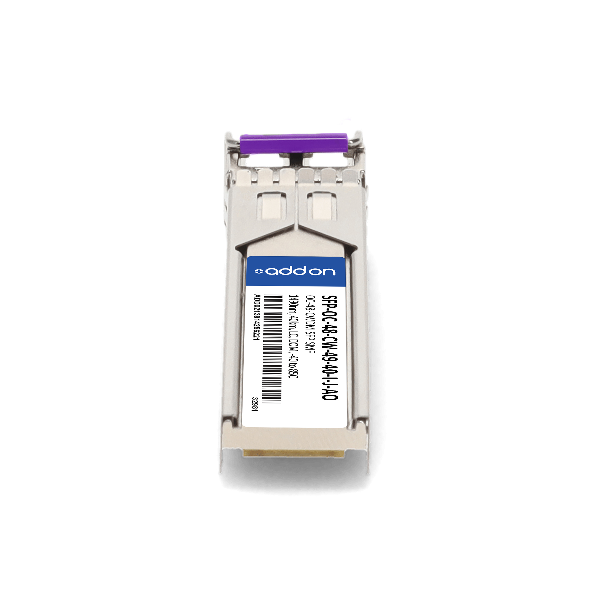 AddOn Networks SFP-OC-48-CW-49-40-I-J-AO. SFP transceiver type: Fiber optic, Maximum data transfer rate: 40000 Mbit/s, Interface type: SFP. Product colour: Silver, Brand compatibility: Juniper. Compliance certificates: Trade Agreements Act (TAA). Quantity per pack: 1 pc(s). Package width: 69.8 mm, Package depth: 120.6 mm, Package height: 30.5 mm |
