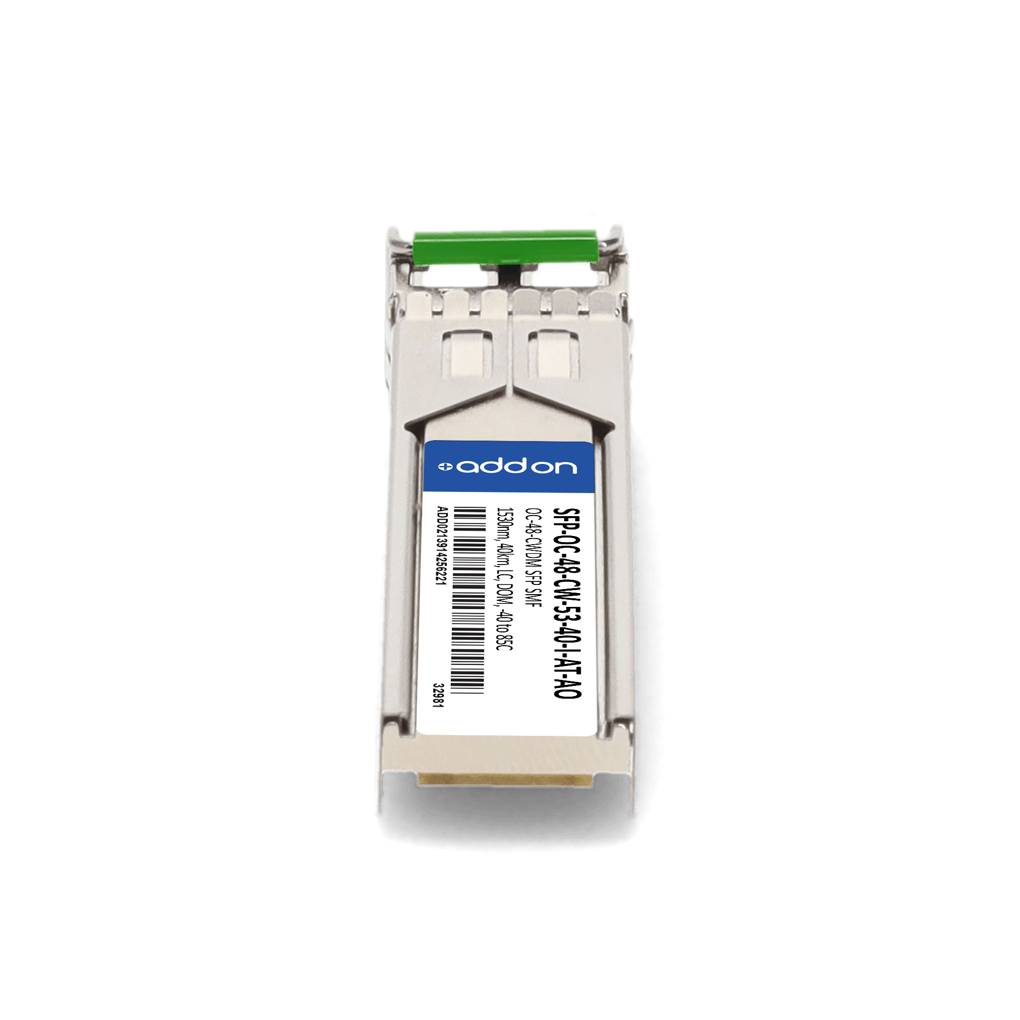 AddOn Networks SFP-OC-48-CW-53-40-I-AT-AO. SFP transceiver type: Fiber optic, Maximum data transfer rate: 40000 Mbit/s, Interface type: SFP. Product colour: Silver, Brand compatibility: Adtran. Compliance certificates: Trade Agreements Act (TAA). Quantity per pack: 1 pc(s). Package width: 69.8 mm, Package depth: 120.6 mm, Package height: 30.5 mm |